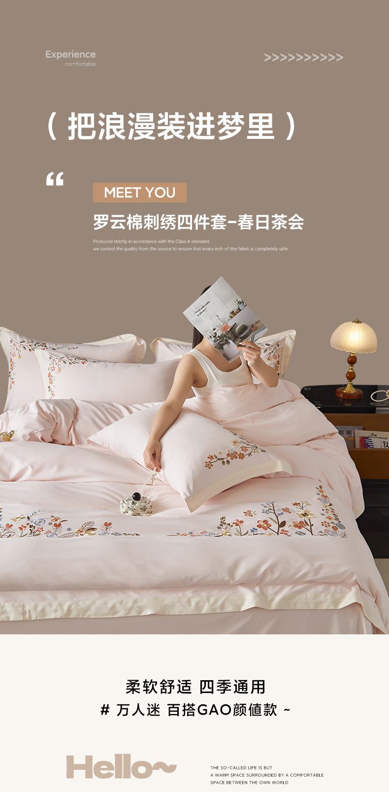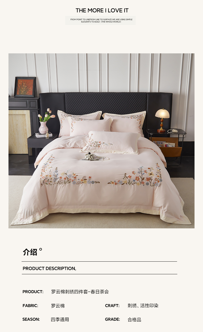 (总)遇见家居生活馆 2026新款罗云棉刺绣四件套-春日茶会,冰薄荷,豆沙,奶油香芋紫,乳白+麦芽糖,山茶粉