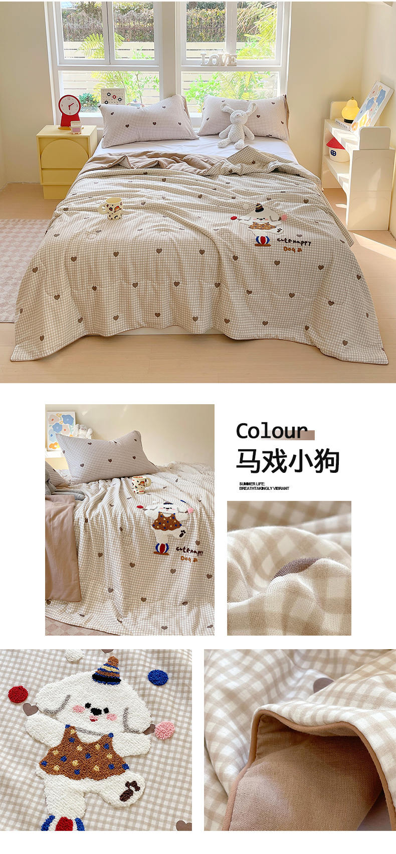 (总)莱宁被业 2026新款A类全棉有氧双层纱印花大豆夏被,草莓甜心,海底世界,欢乐小熊,凯蒂喵,可可樱桃,恐龙派对,腊肠狗,绿野仙踪,南瓜物语,沁香花语,时光咖条,小晴天,星星仔,幸运小狗,组合图