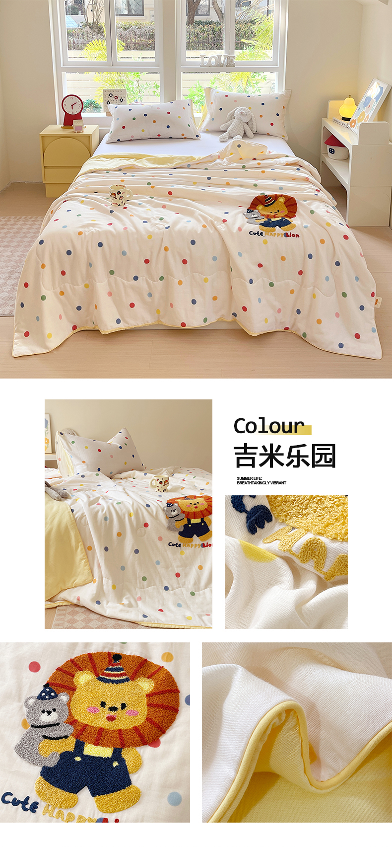 商品名称:(总)莱宁被业 2026新款原创设计A类全棉有氧双层纱毛巾绣大豆夏被