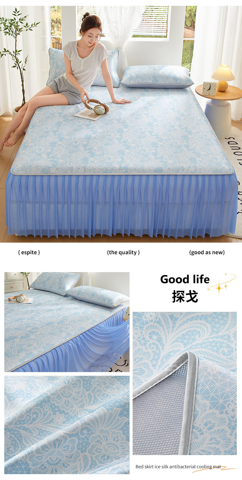 商品名称:优莱床垫 2026新款冰丝复合抗菌凉席床裙款 清羽冰蓝凉席床裙