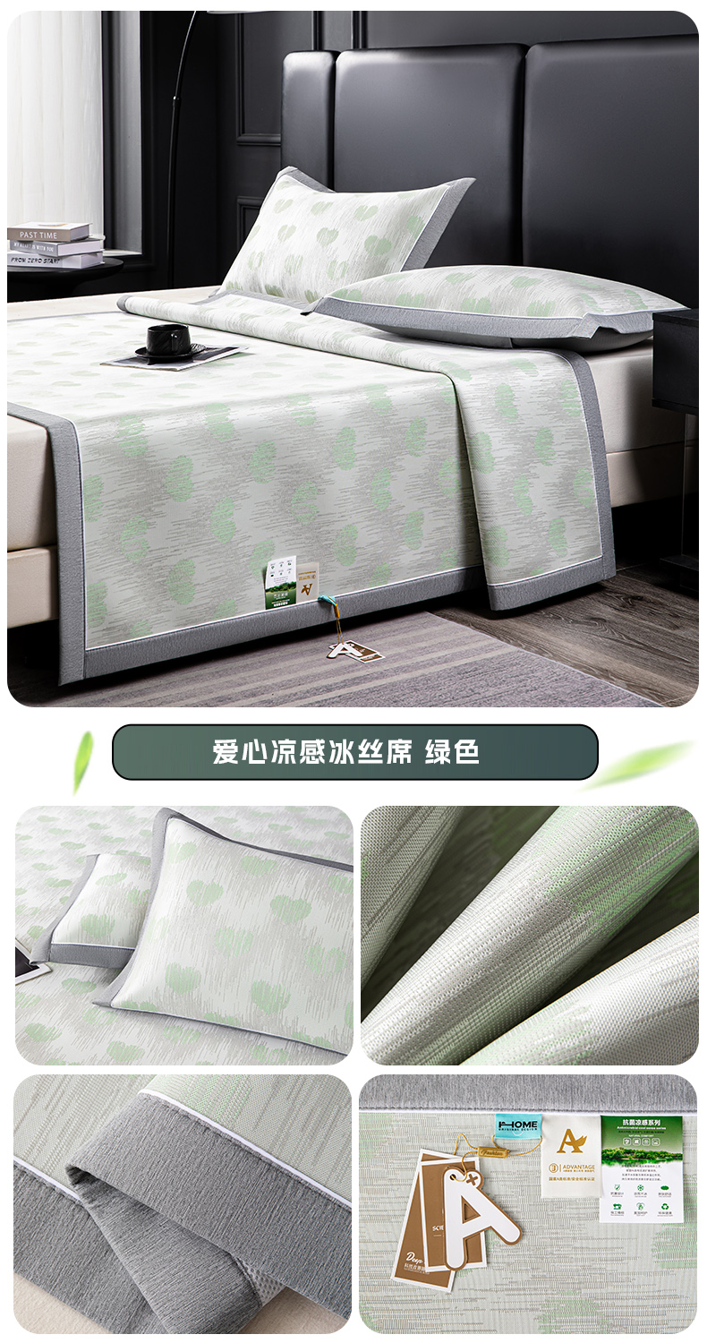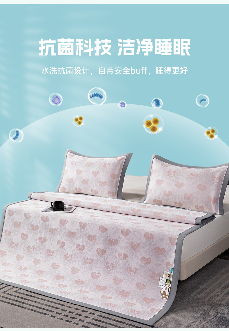 (总)2023新款超精密冰丝席-小斜纹系列-床笠款藤席凉席竹席,粉色,蓝色,绿色,银灰
