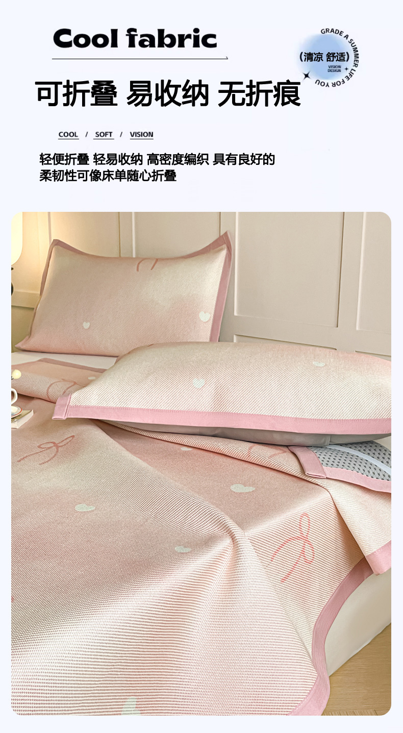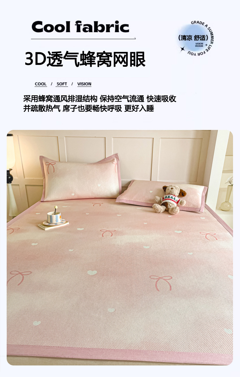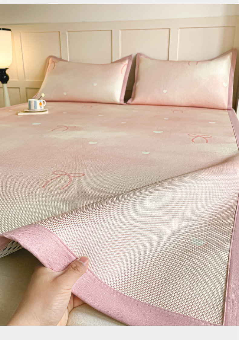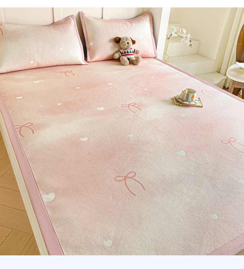 商品名称:柒月家居 2026新款小清新印花冰藤系列凉席席子-平铺款 爱心蝴蝶结