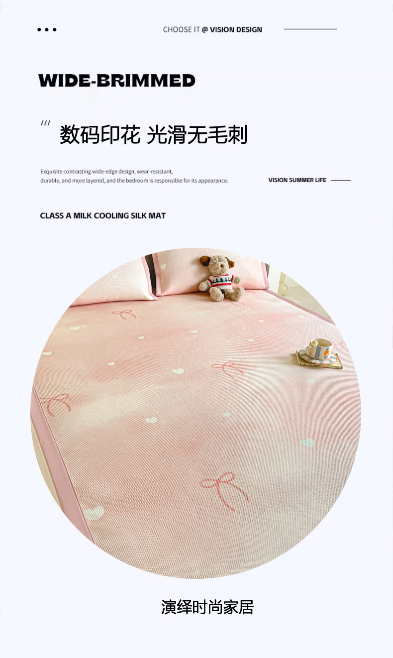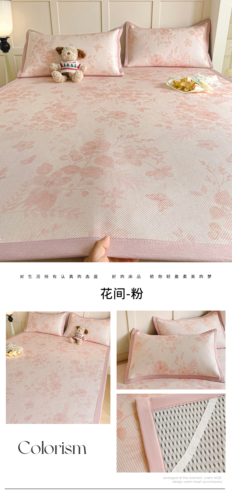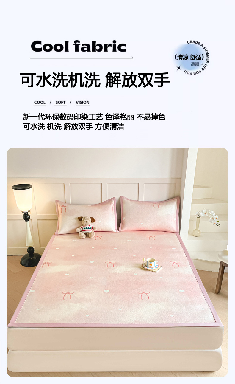 商品名称:柒月家居 2026新款小清新印花冰藤系列凉席席子-平铺款 爱心蝴蝶结