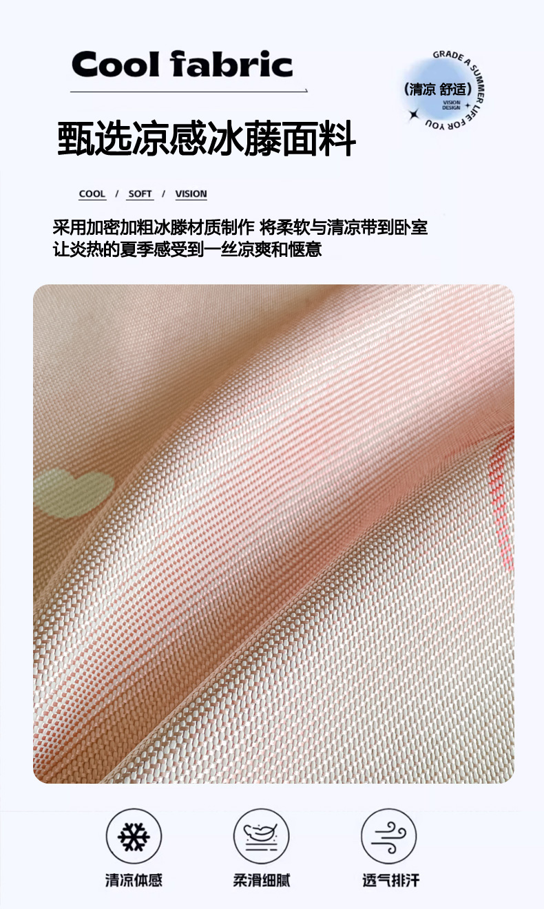 (总)柒月家居 2025新款小清新印花冰藤系列,窗外兔,爱心布布,爱心蝴蝶结,背景猫,彩色波点,呆萌企鹅,粉色花海,风华-灰,风华-绿,格格熊,花间-粉,花间-咖,花蔓,绿茵,猫猫日记,熊猫团子,叶语,夜空,晕染爱心,字母熊宝