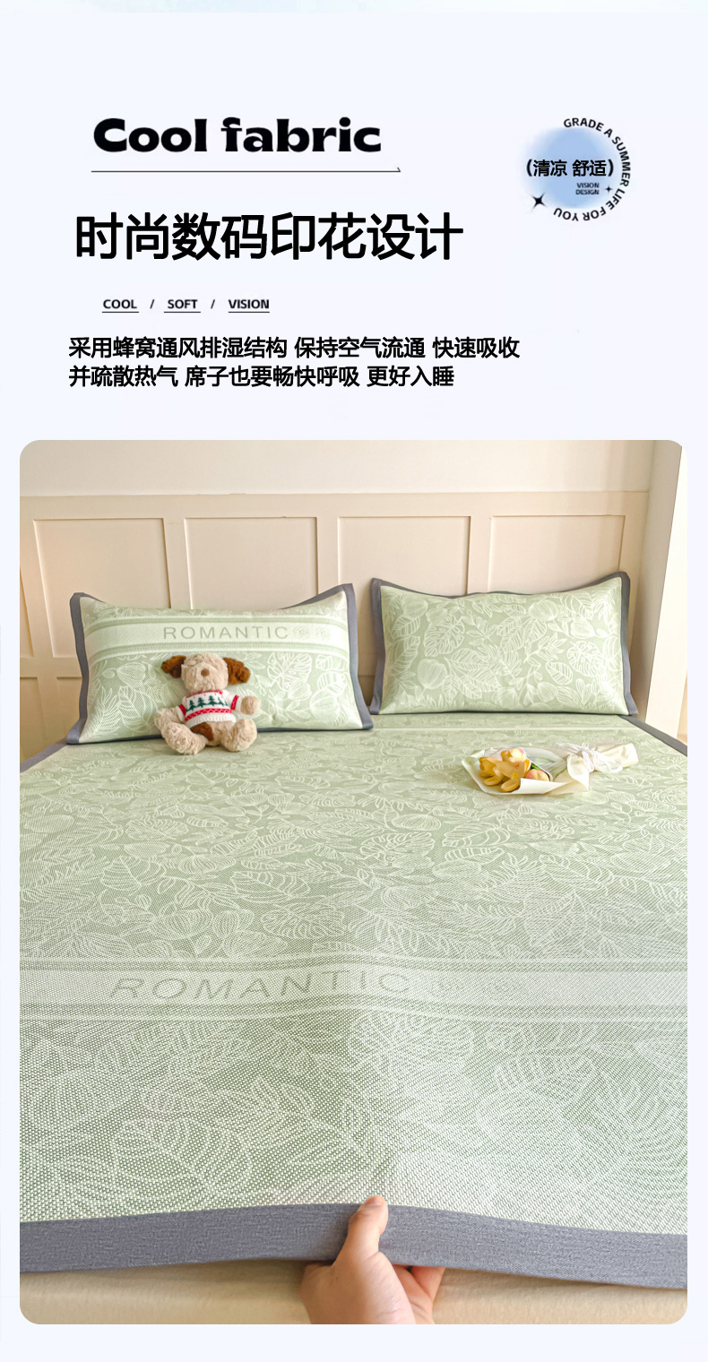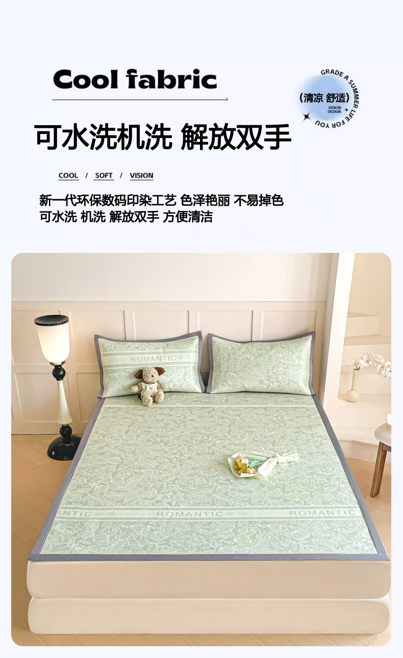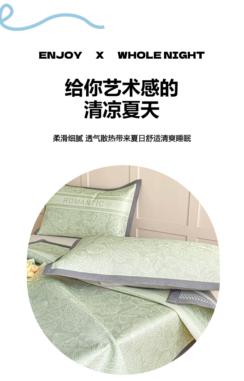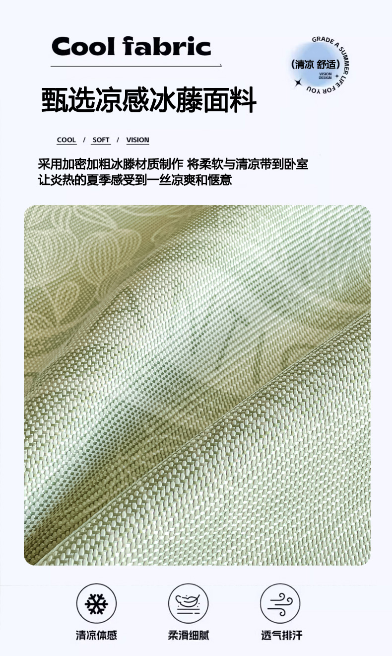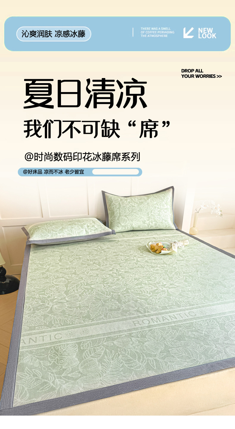 商品名称:柒月家居 2026新款小清新印花冰藤系列凉席席子-平铺款 绿茵