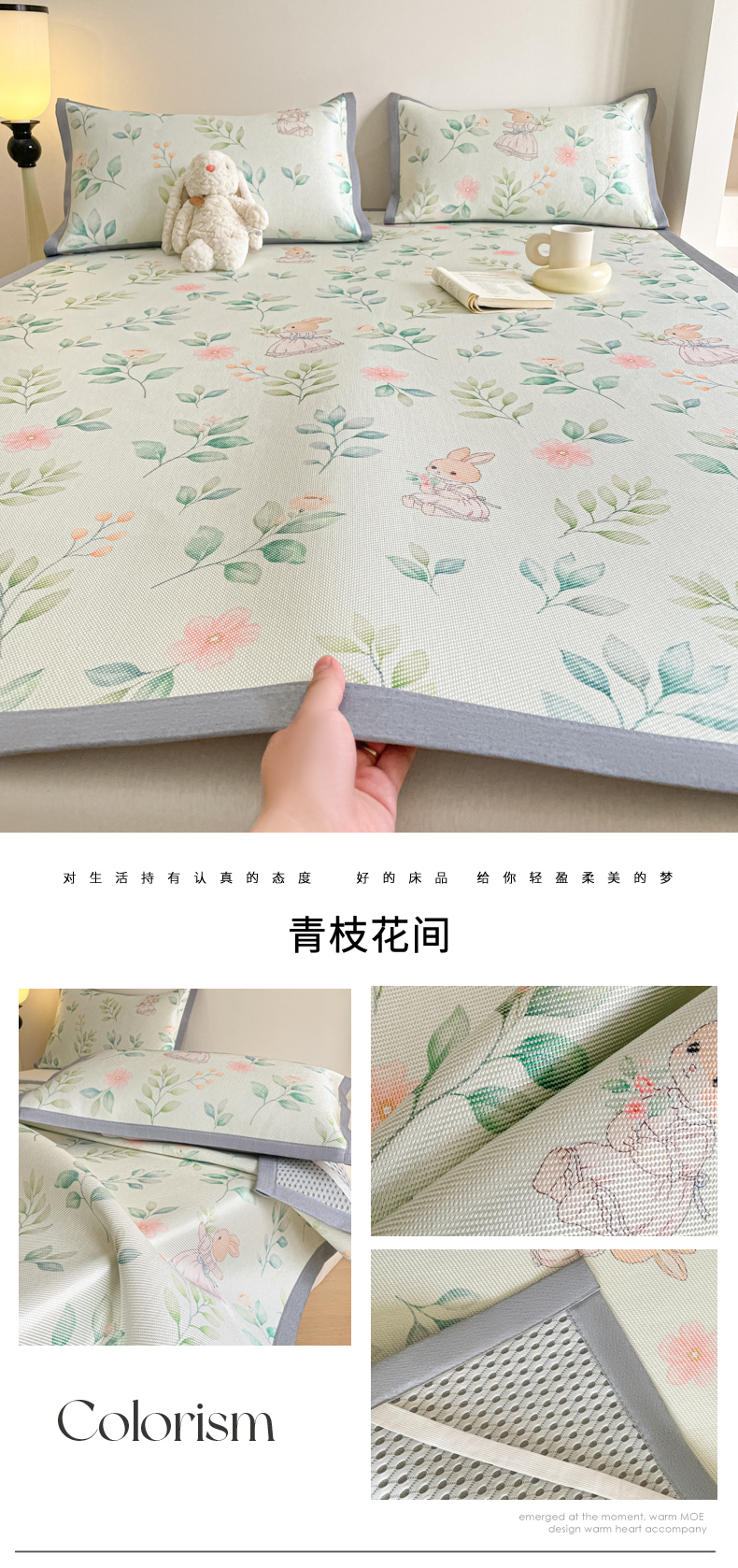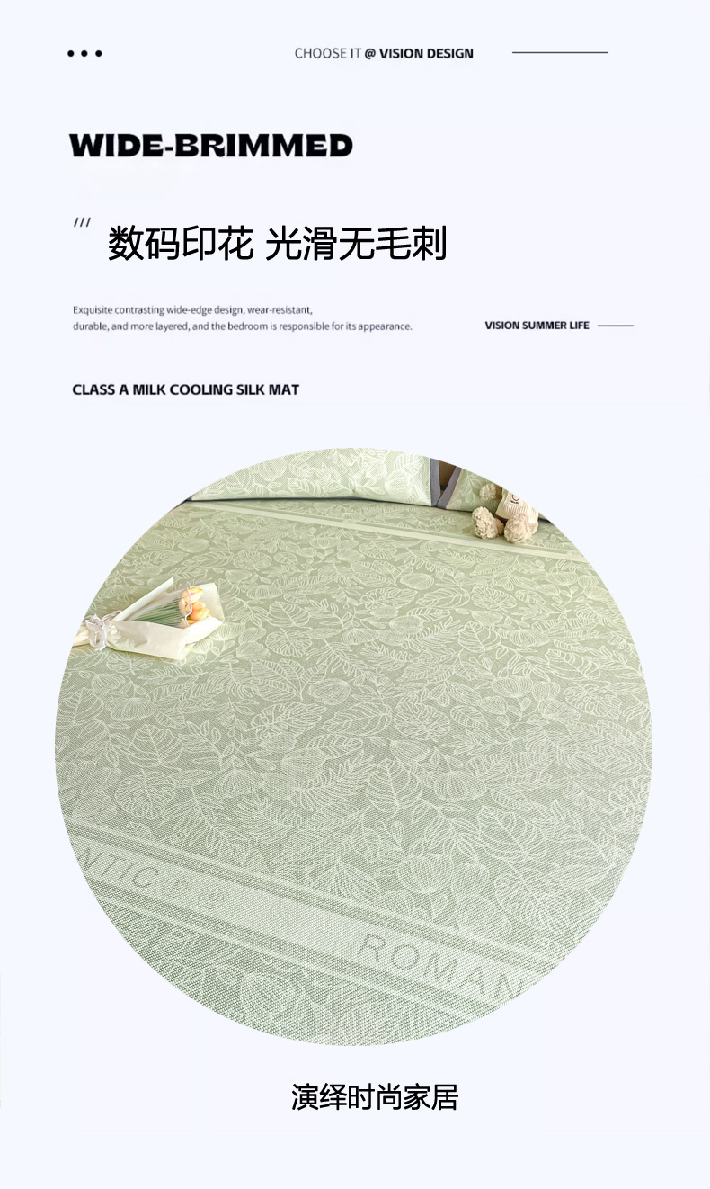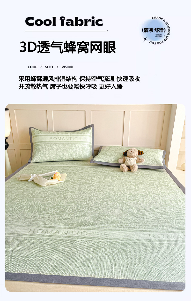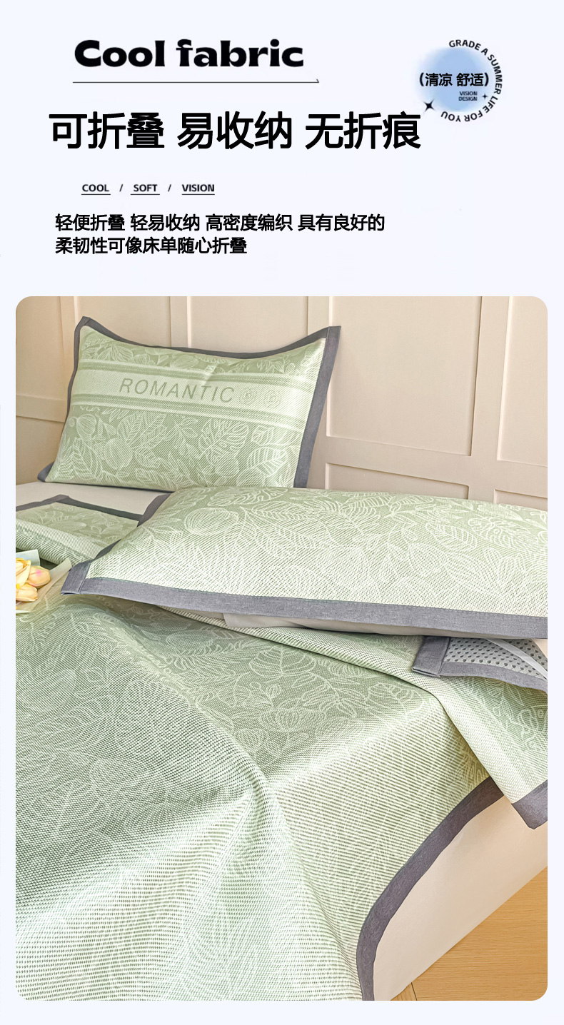 商品名称:柒月家居 2026新款小清新印花冰藤系列凉席席子-平铺款 绿茵