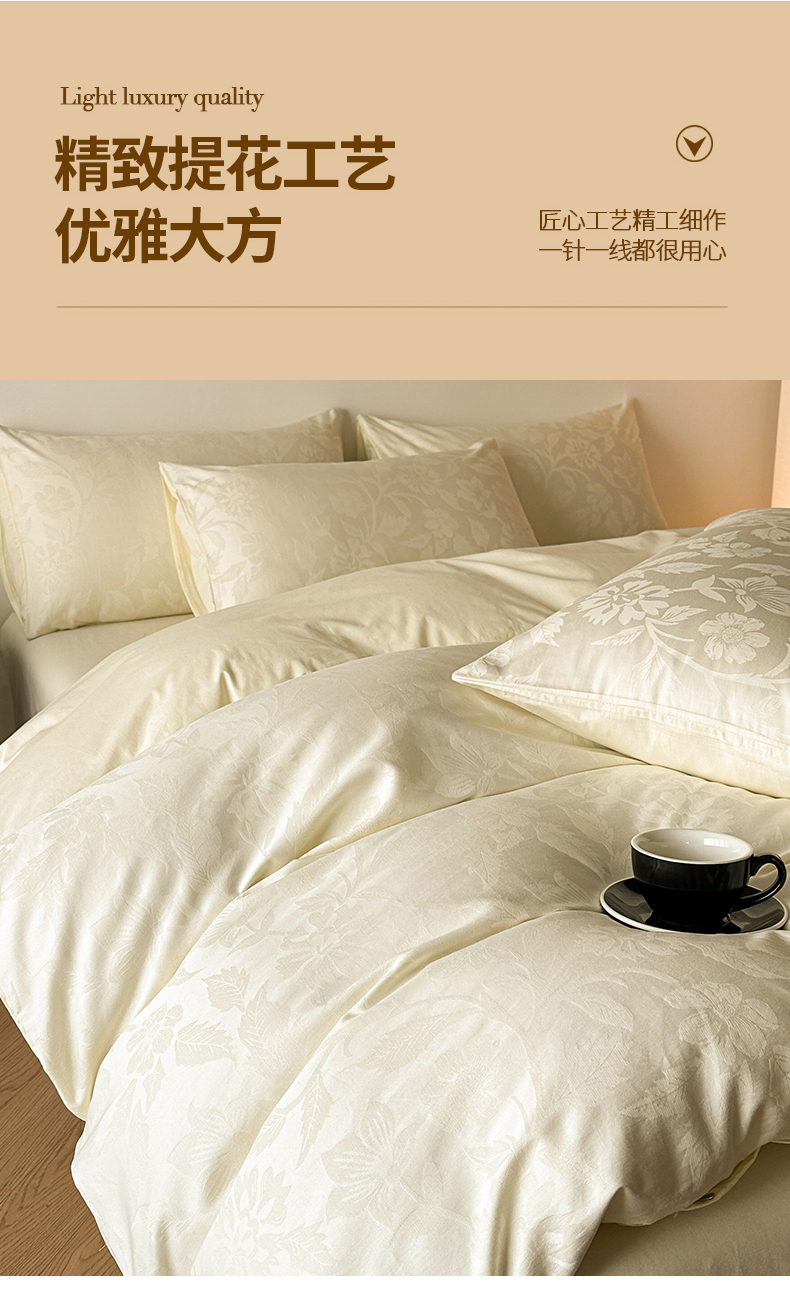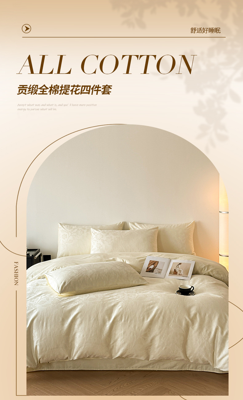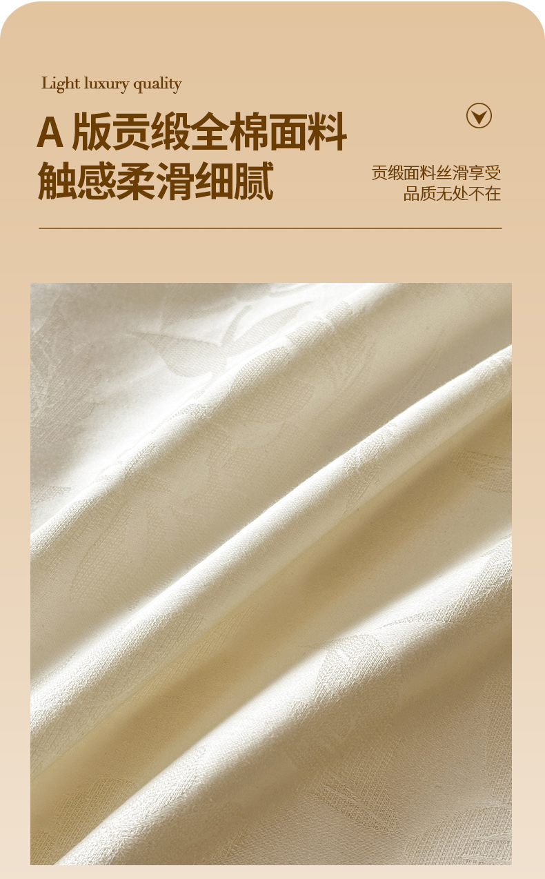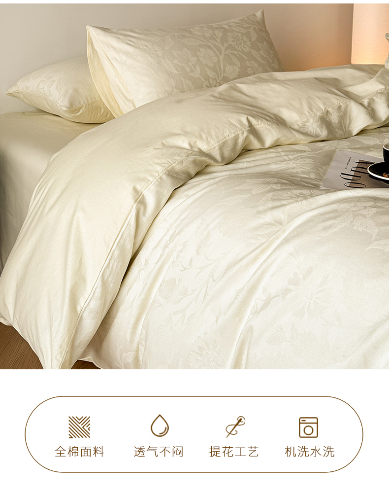当前位置: 91家纺网 > 商品网购 > 床品套件 > 四件套 > 全棉普通四件套 > 琪格格纺织 2026新款纯棉全棉60s贡缎轻奢大提花四件套 纯棉贡缎提花-风浅奶白