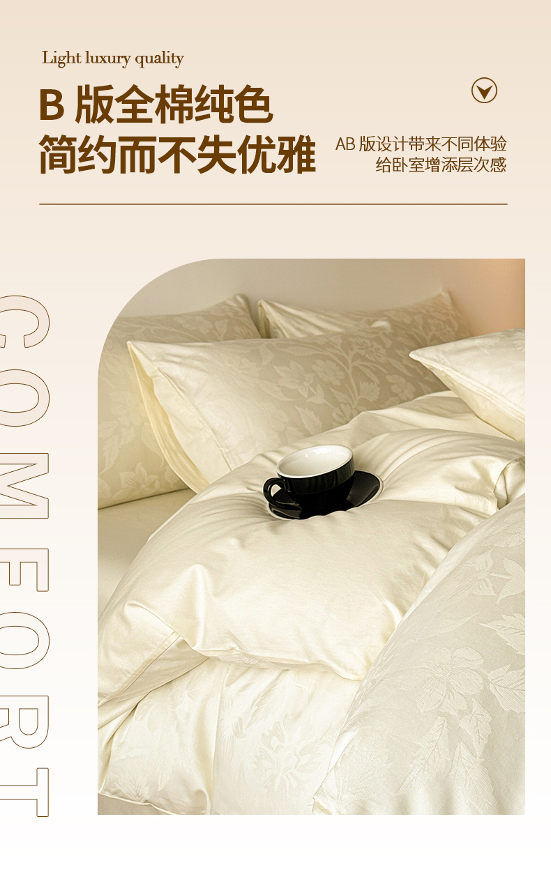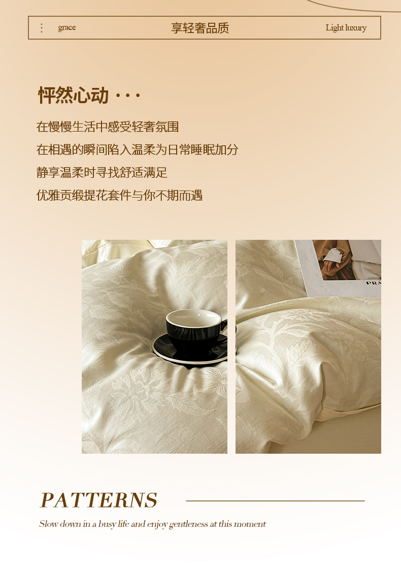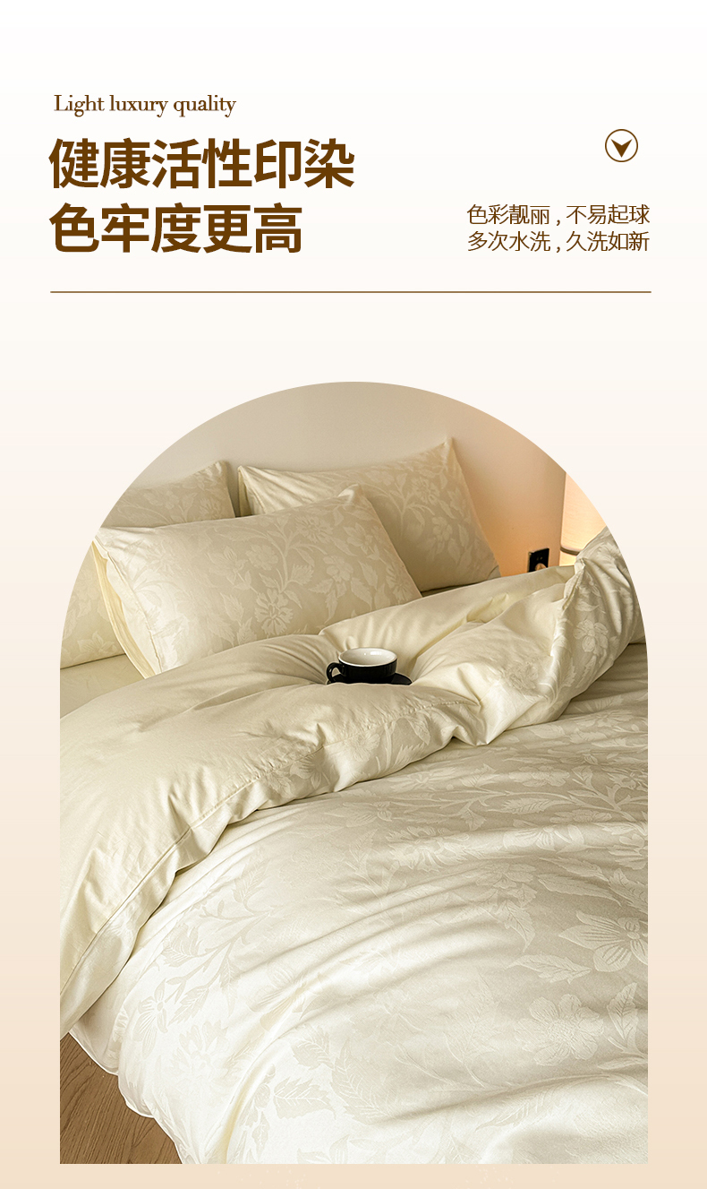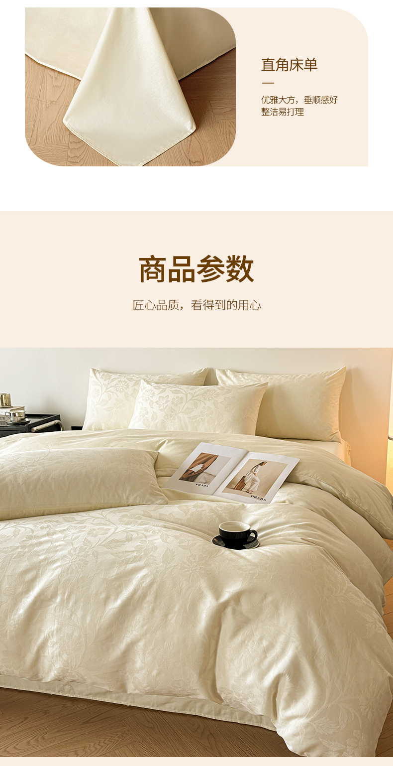 当前位置: 91家纺网 > 商品网购 > 床品套件 > 四件套 > 全棉普通四件套 > 琪格格纺织 2026新款纯棉全棉60s贡缎轻奢大提花四件套 纯棉贡缎提花-风浅奶白
