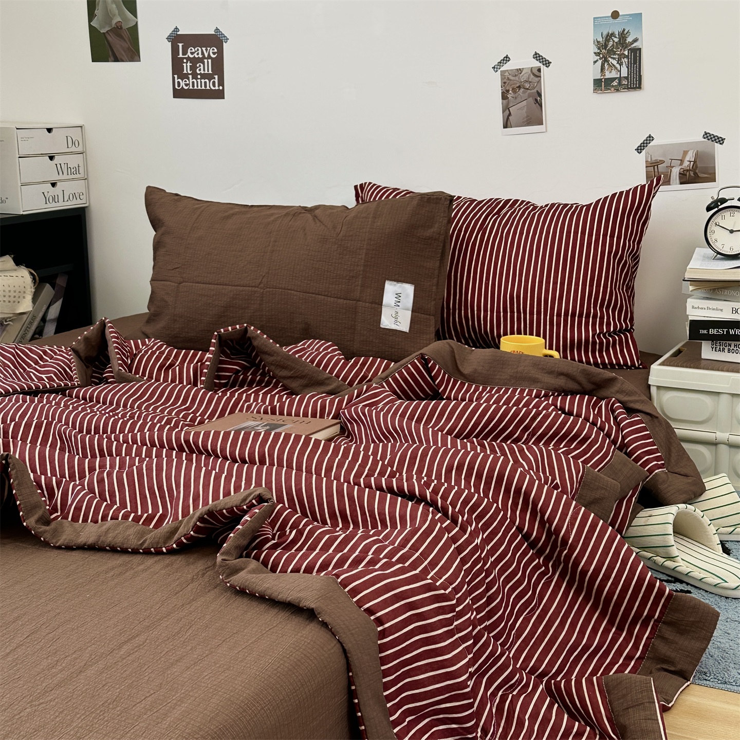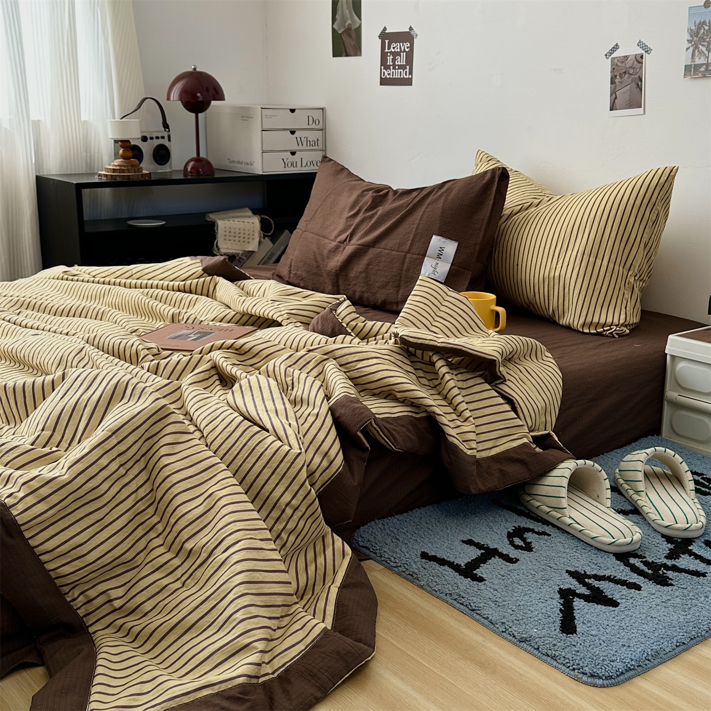 (总)拾一 2026新款条纹简约中古木棉水洗棉四件套,慵懒条-黑,慵懒条-红,慵懒条-灰,慵懒条-卡其,慵懒条-克莱因蓝,慵懒条-奶茶,慵懒条-棕