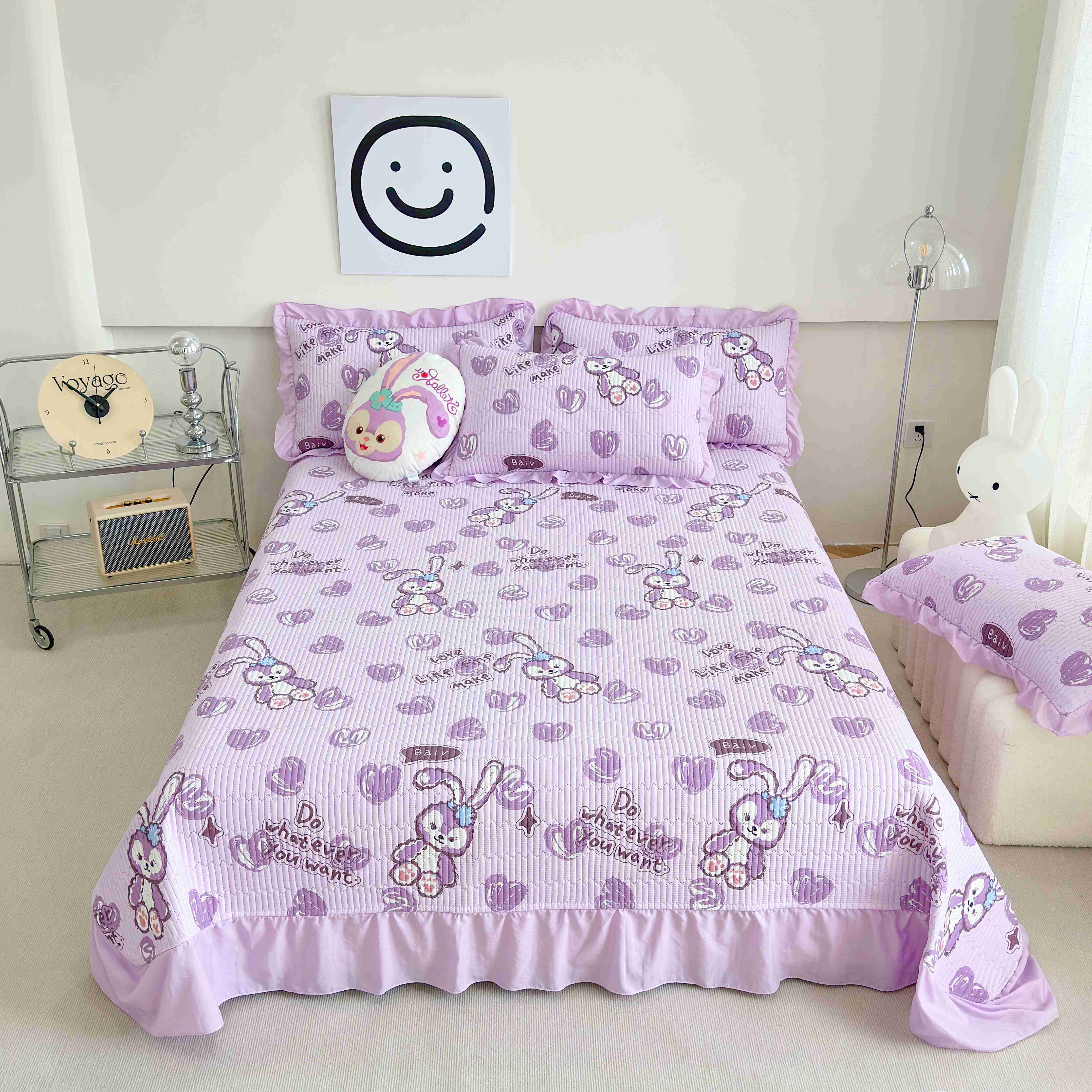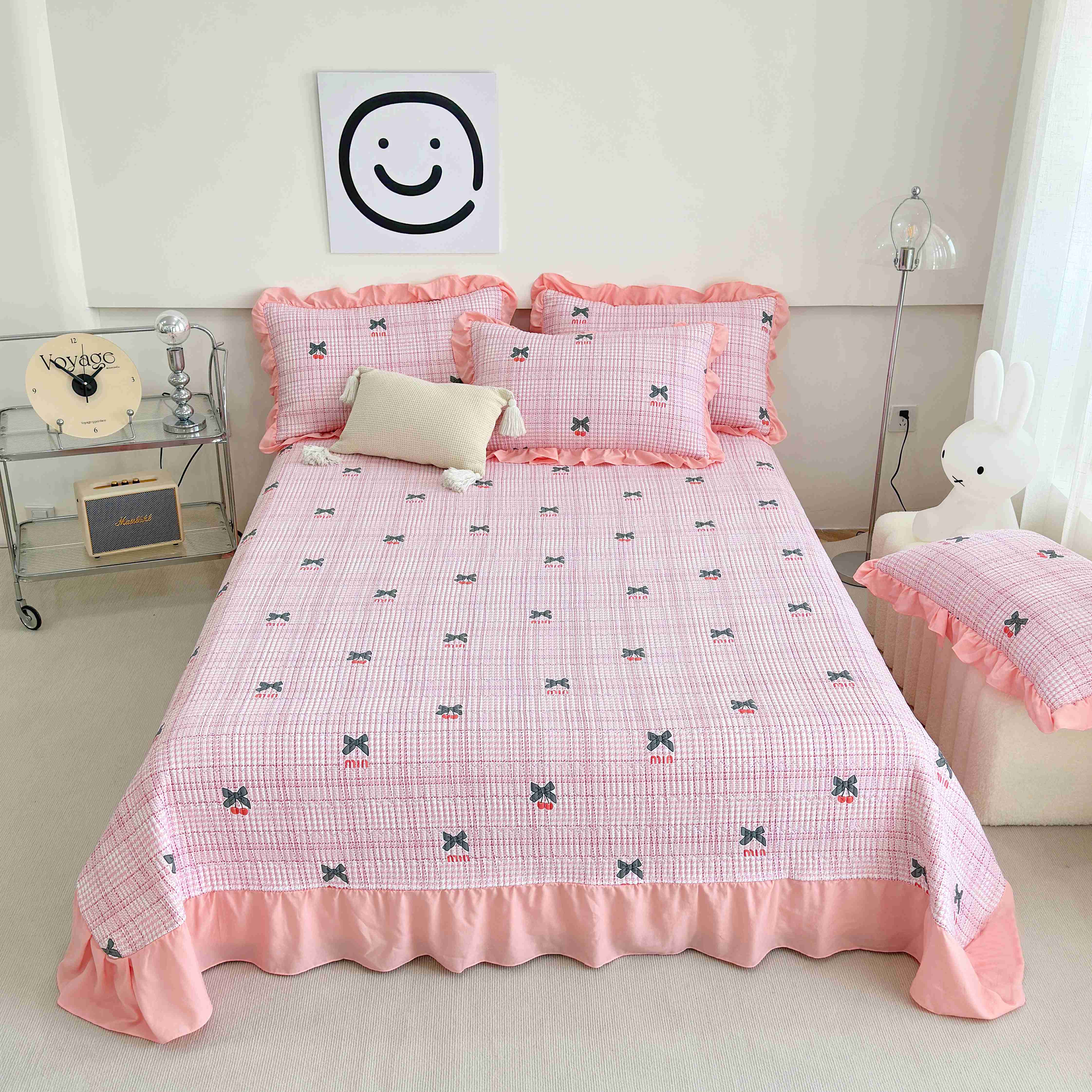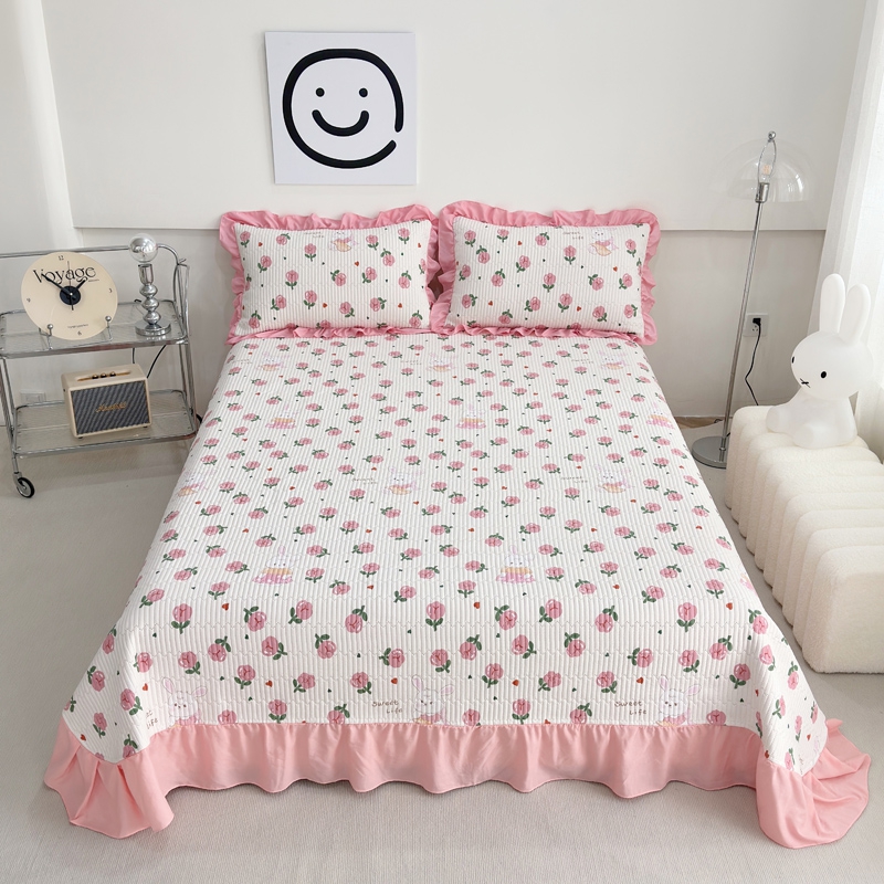 赛琳 2026新款水洗棉花边床盖单件床盖四季通用夹棉床盖 床盖单件 爱心小狗
