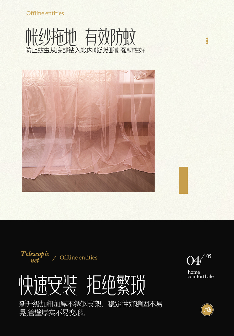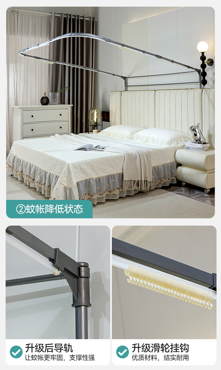商品名称:舞夜盛世 2026新款超大空间加密加厚导轨款蚊帐-D-01 D-01-玉色