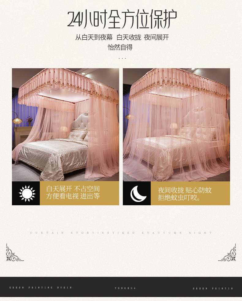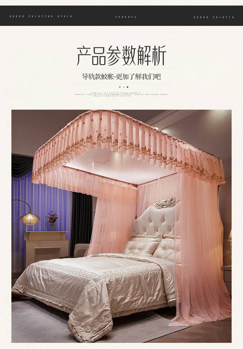 (总)舞夜盛世 2026新款u型拉幕导轨蚊帐轨道蚊帐落地宫廷蚊帐—春暖花开,春暖花开-粉色,春暖花开-黄色,春暖花开-水绿,春暖花开-玉色,春暖花开-紫色
