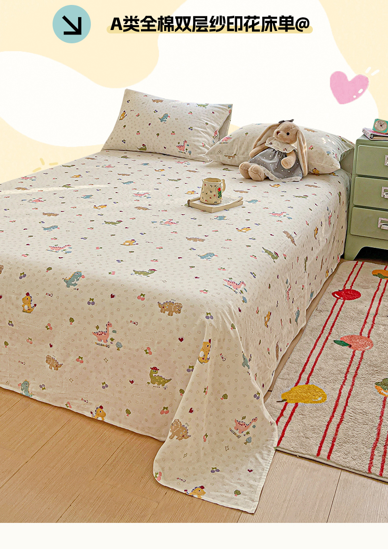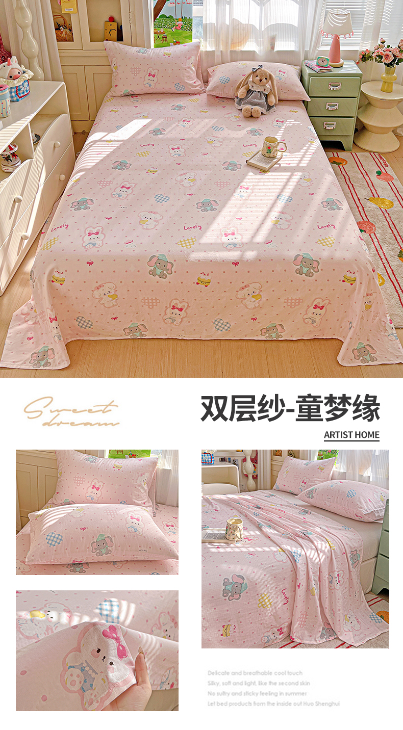 (总)名兮家居 2026新款全棉纯棉A类双层纱单床单 床单单件,双层纱-彩色波点,双层纱-彩条樱桃,双层纱-狗狗幻想,双层纱-花田鸭,双层纱-兰花小兔,双层纱-蘑菇屋,双层纱-木马集,双层纱-奶黄星仔,双层纱-晴天兔,双层纱-趣味王国,双层纱-碎星蝶舞,双层纱-童梦缘,双层纱-小狗日记,双层纱-星星凯特,双层纱-猪猪乐园,双层纱-竹林派对