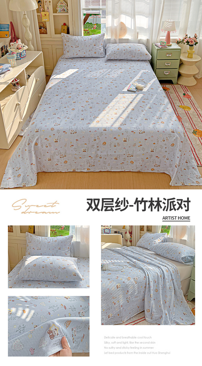 • 91家纺网 家纺一手货源 找家纺 名兮家居 2026新款全棉纯棉A类双层纱单床单 床单单件 双层纱-趣味王国