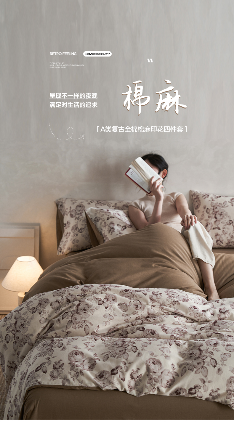 (总)如一 2026新款A类复古全棉棉麻印花四件套,蝶影,果韵,漫野,青花,硕果,郁香,枝叶,庄园