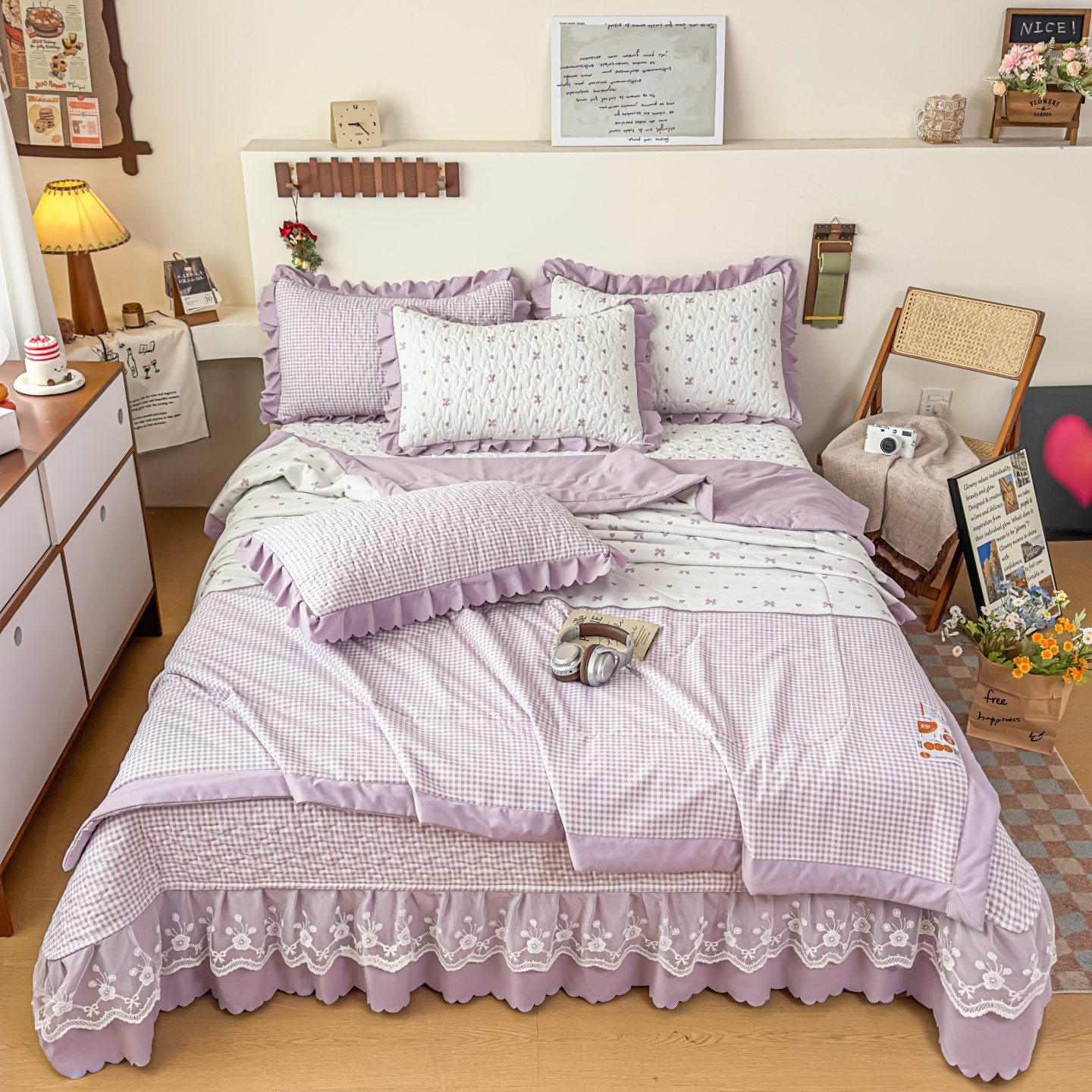 (总)雅眠居 2026直播爆款双层蕾丝花边夏被款床盖款四件套,彩格-粉,彩格-灰,彩格-蓝,彩格-绿,彩格-紫,豆蔻,蝴蝶印记,花满满,花语,灰韵,秘境-灰,秘境-绿,秘境-紫,奶油波点,诗意,十里桃花,夏花,小福星,小时光,胭花集,紫萱