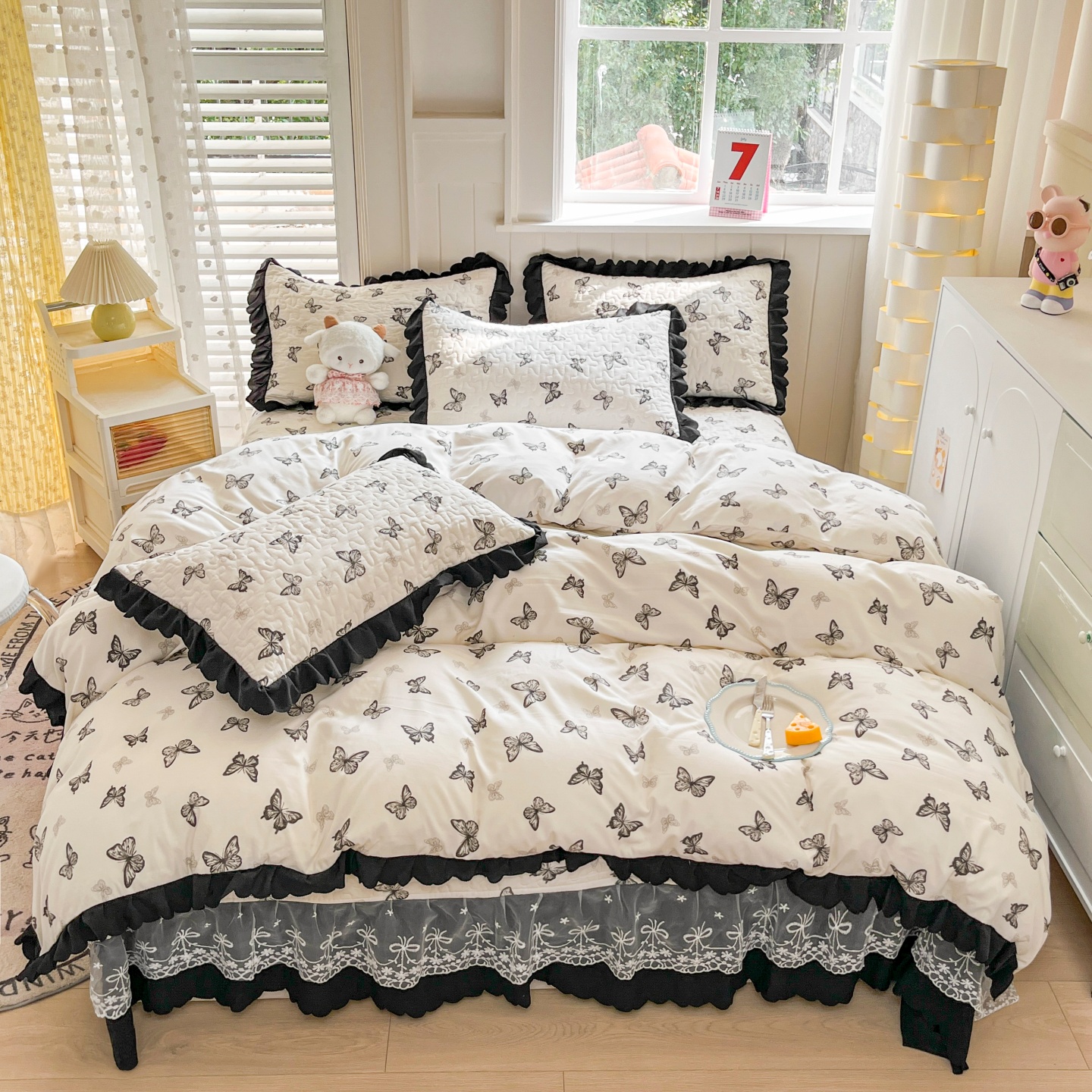 • 91家纺网 家纺一手货源 找家纺 雅眠居 2026直播爆款双层蕾丝花边夏被款床盖款四件套 小福星