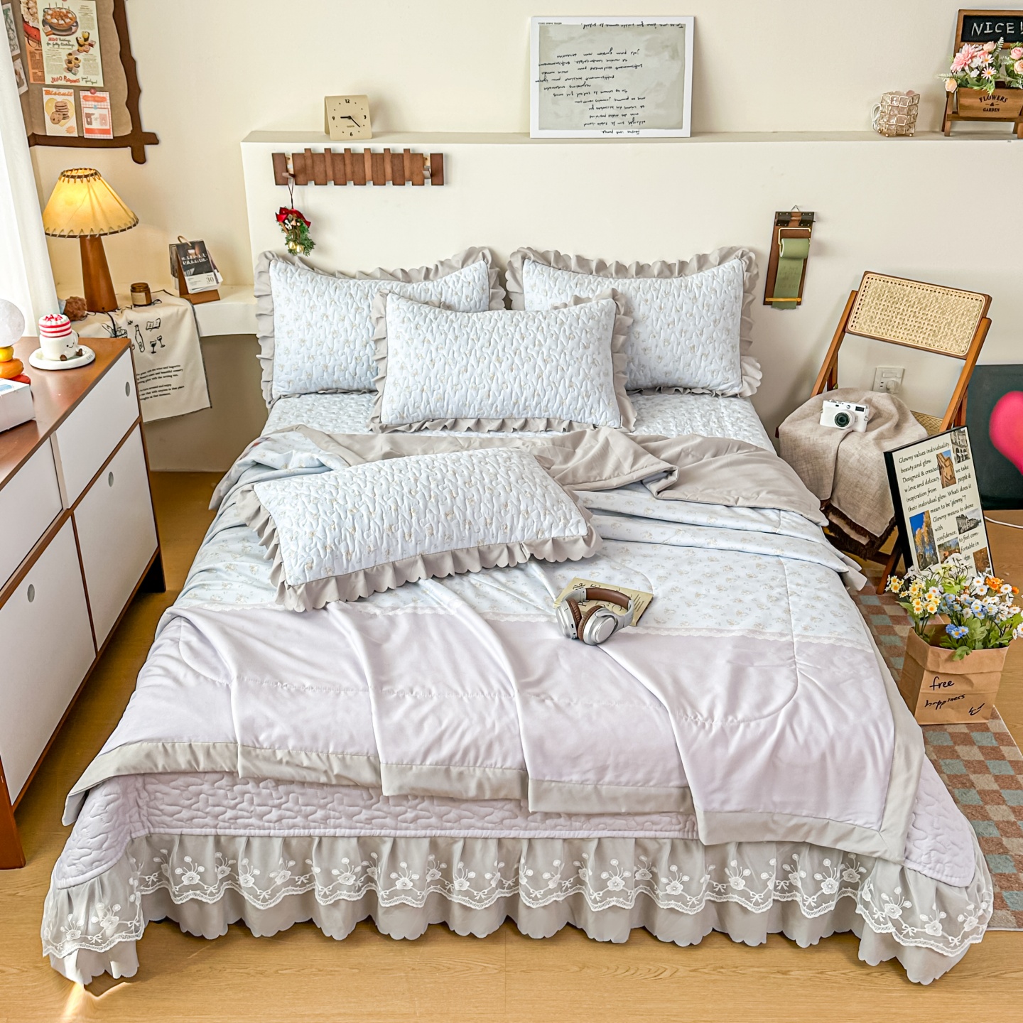 雅眠居 2026直播爆款双层蕾丝花边夏被款床盖款四件套 小福星