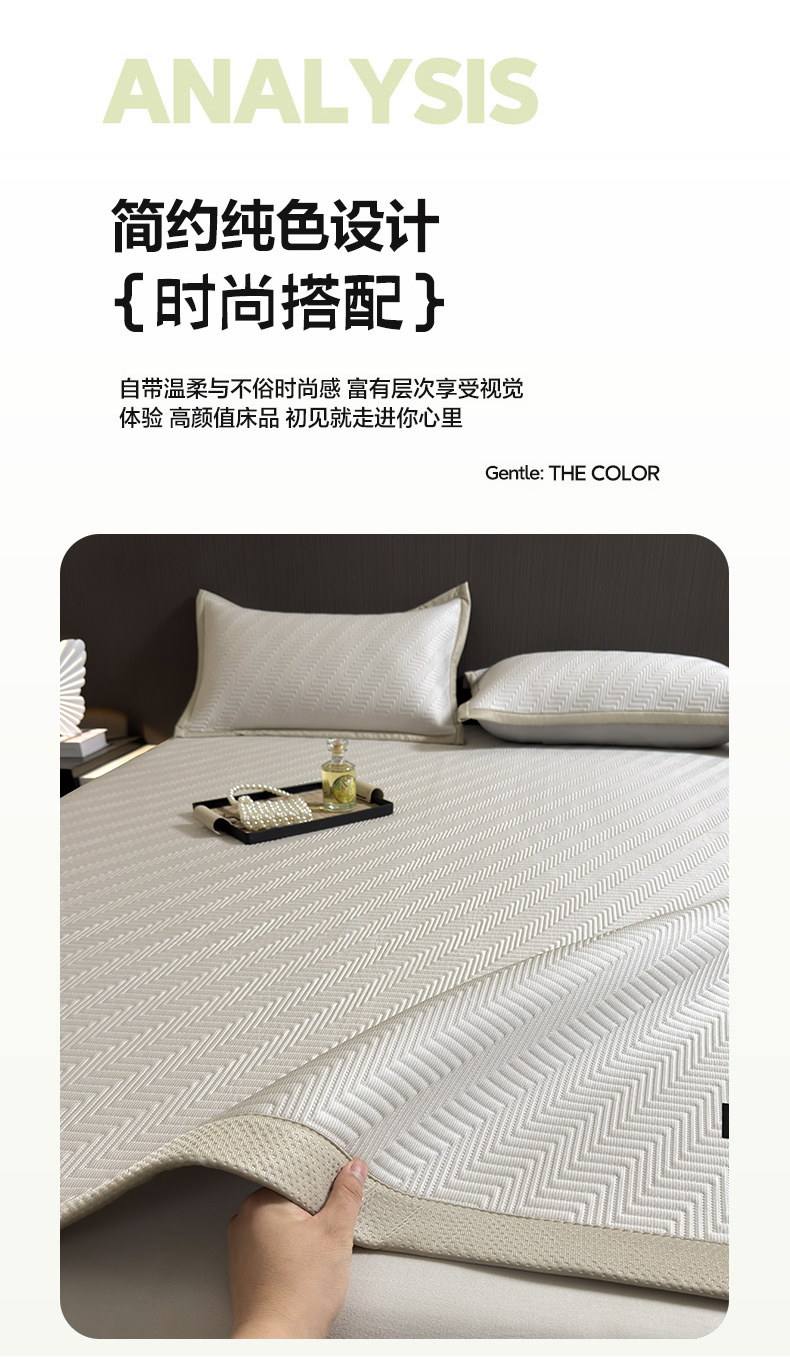 慕木家纺 2026新款A类高克重三明治复合乙纶提花冰豆豆凉席床笠冰棱斜纹系列(提供买家秀) 组合图床笠款