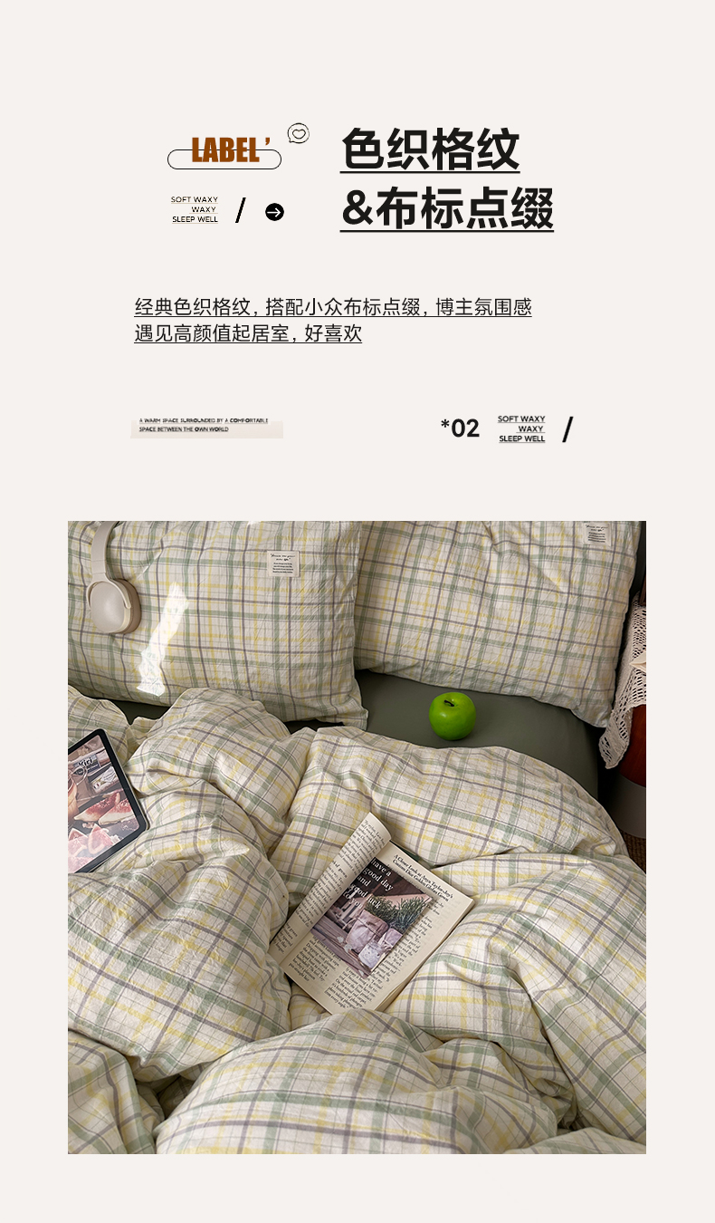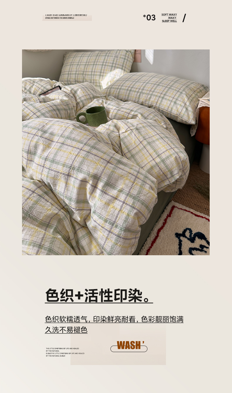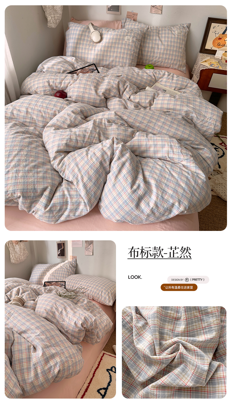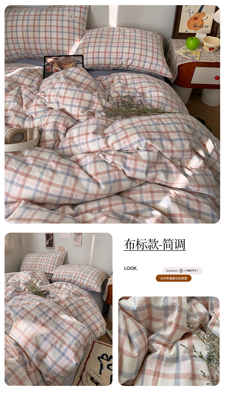 当前位置: 91家纺网 > 商品网购 > 床品套件 > 四件套 > 全棉普通四件套 > 艾咪-Amy ntmy 2026春夏新款布标格纹款全棉纯棉色织水洗棉四件套 布标款-森语