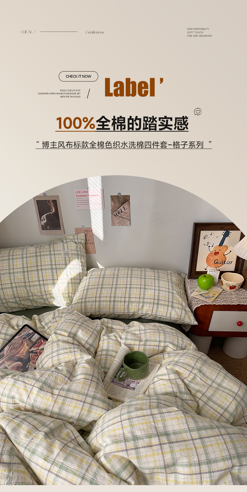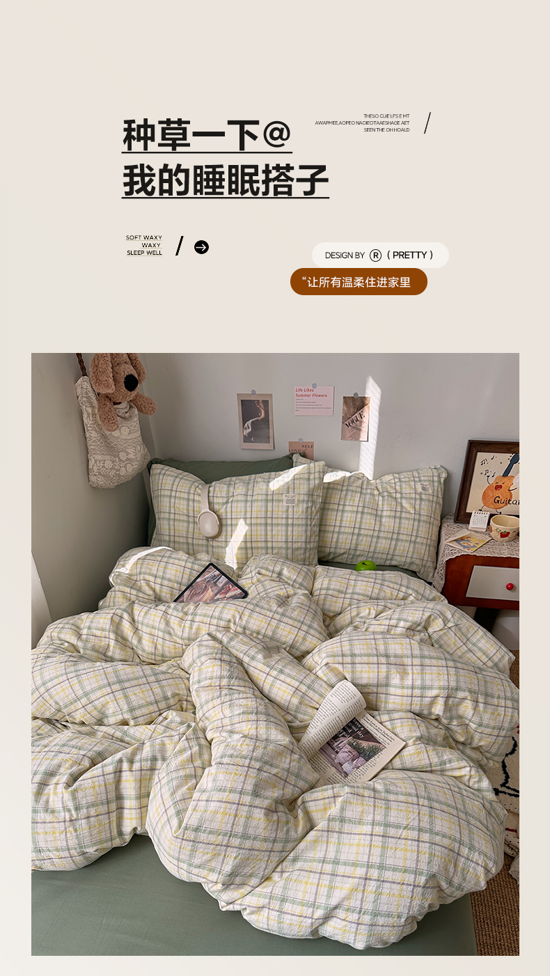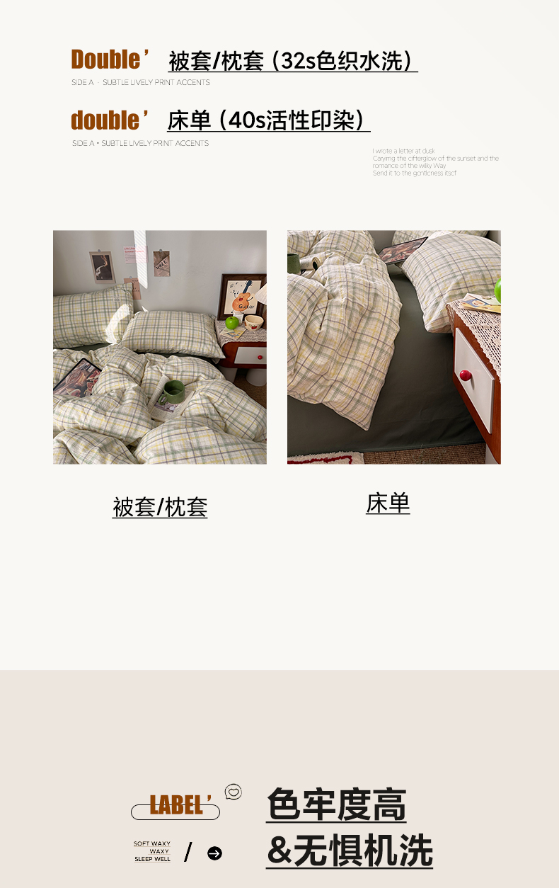 当前位置: 91家纺网 > 商品网购 > 床品套件 > 四件套 > 全棉普通四件套 > 艾咪-Amy ntmy 2026春夏新款布标格纹款全棉纯棉色织水洗棉四件套 布标款-森语