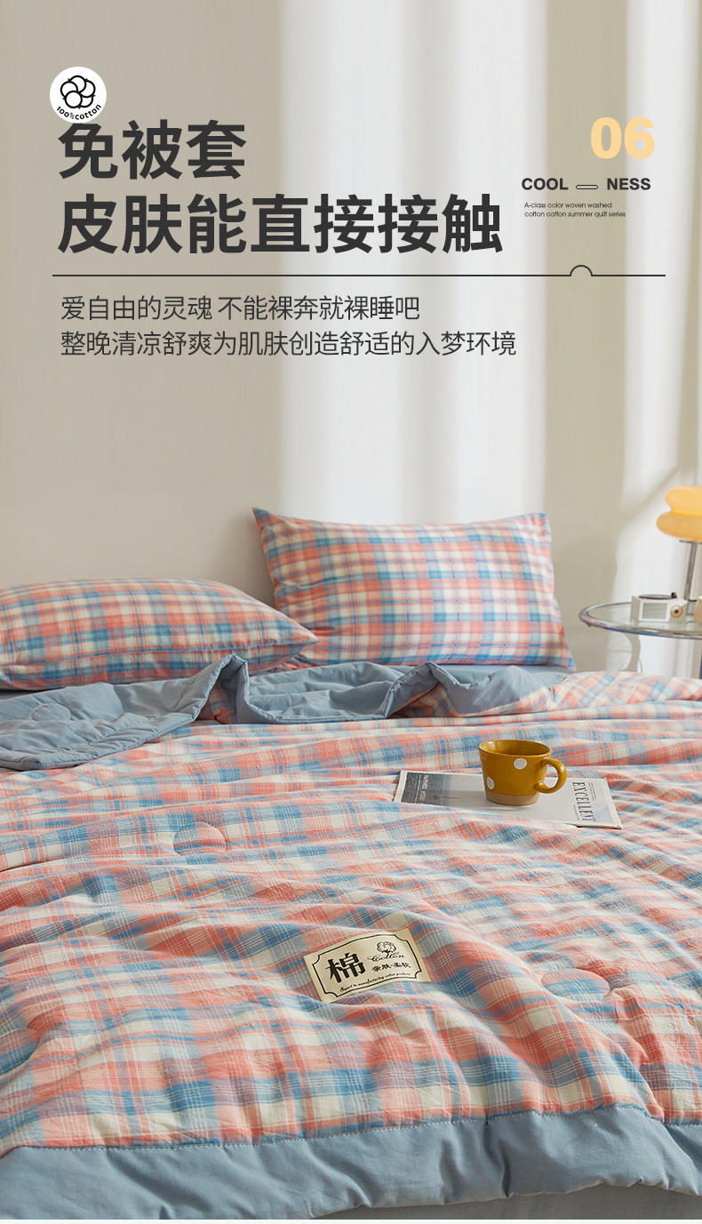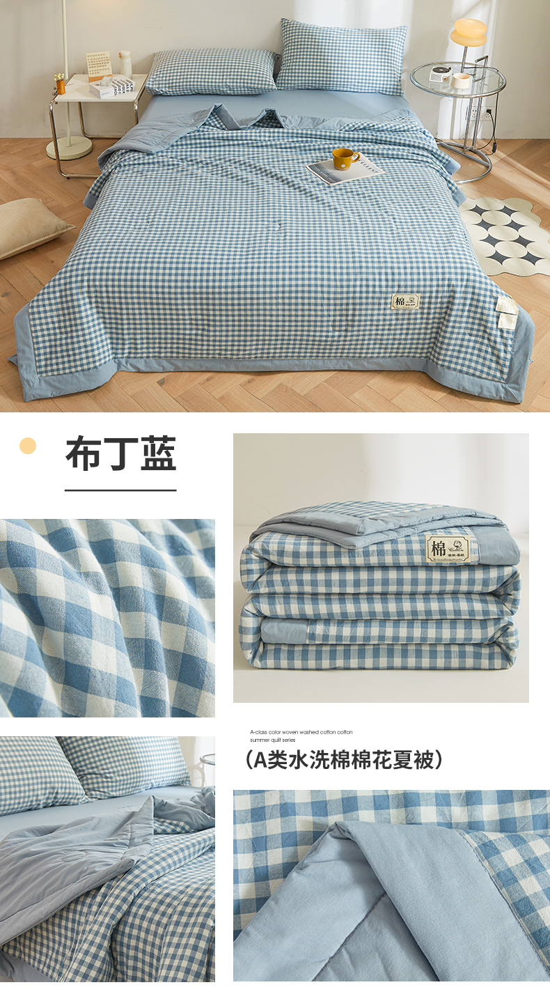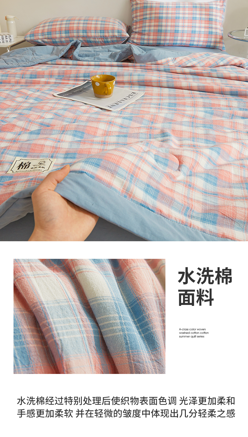 (总)晓时候 2026新款全棉色织水洗棉棉花夏被夏凉被空调被,巴宝莉格,粉大格,粉小格,海蓝大格,黄小格,灰细条,灰中格,简兮蓝,蓝灰大格,蓝条纹,蓝小格,洛卡灰,绿咖大格,莫尼蓝,星空桔,云舒粉