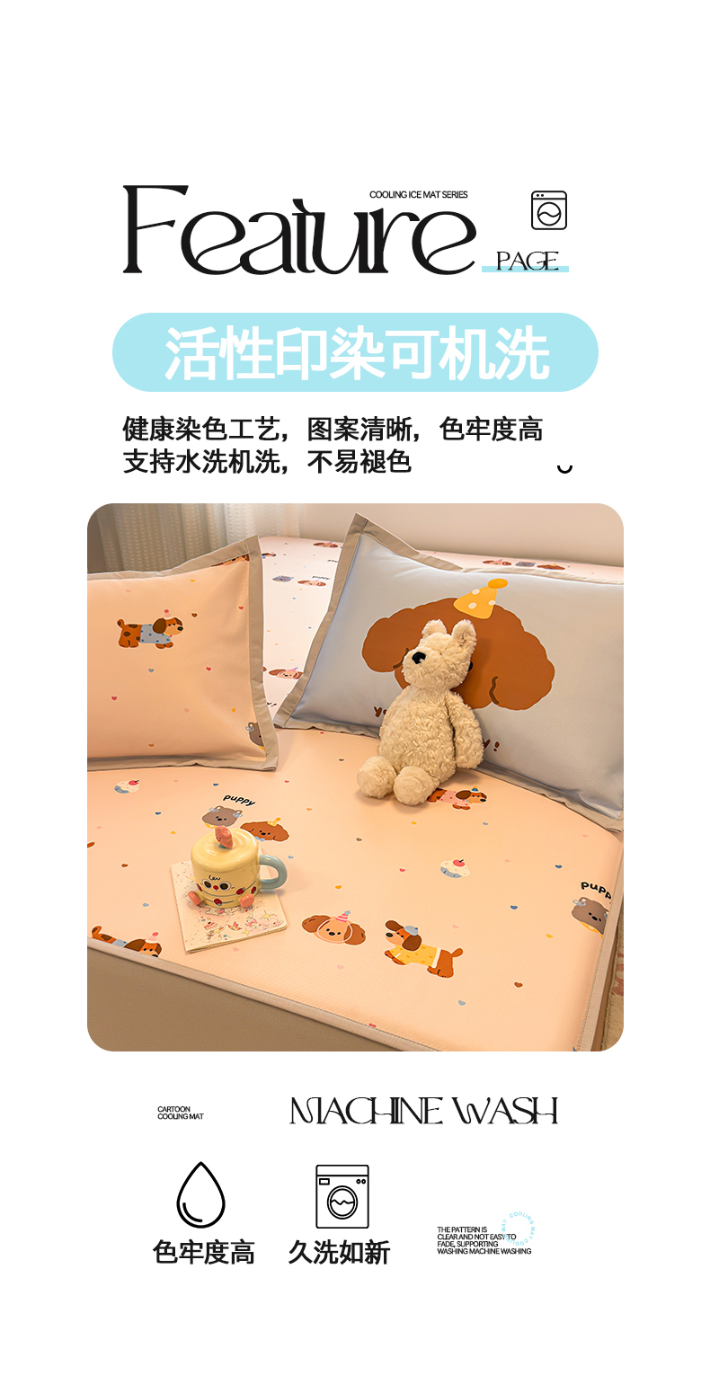 商品名称:懒猫家纺 2026新款卡通凉感冰丝床笠款凉席 床笠席-彩豆汪汪队