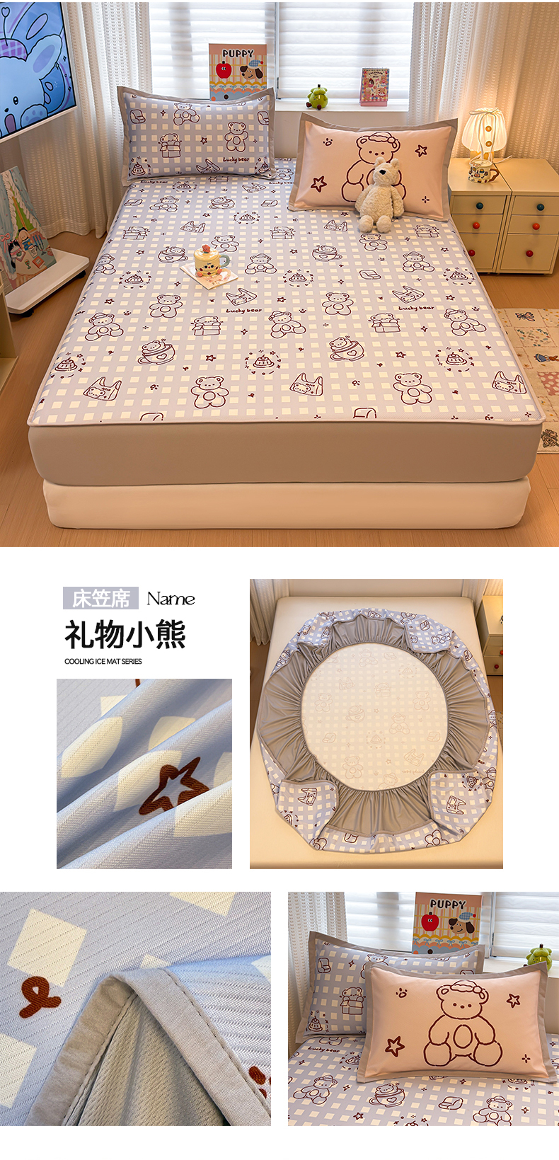 (总)懒猫家纺 2026新款卡通凉感冰丝床笠款凉席,床笠席-冰淇淋小狗,床笠席-彩豆汪汪队,床笠席-彩格萌宠,床笠席-费尔岛,床笠席-格纹爱犬,床笠席-汉堡小狗,床笠席-咖豹小猫,床笠席-酷狗腊肠,床笠席-礼物小熊,床笠席-甜心茶语,床笠席-星愿萌宠,床笠席-熊兔玩伴