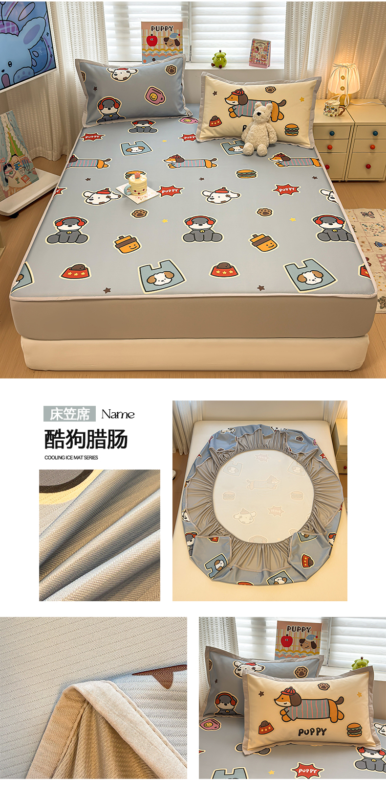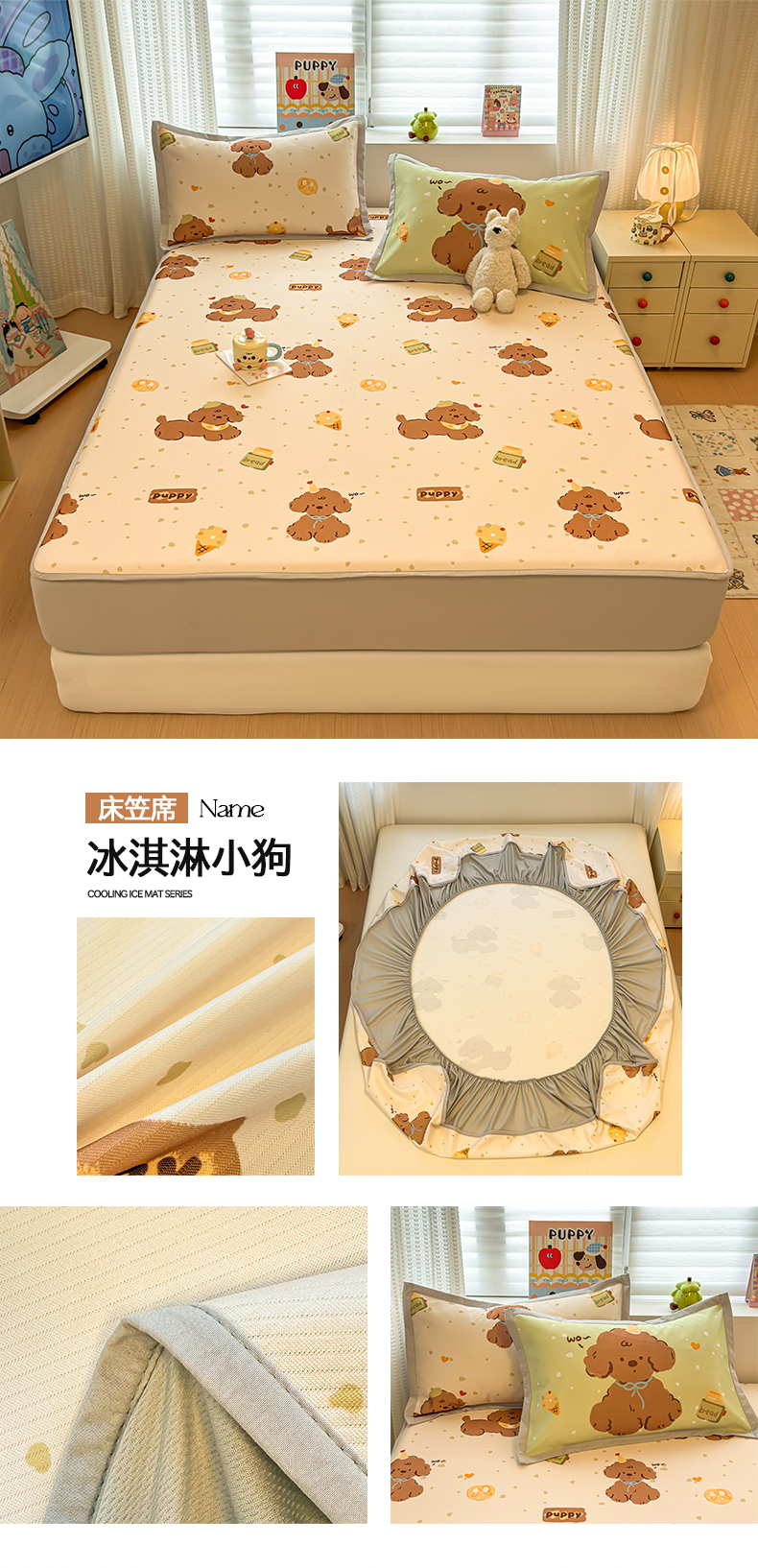 (总)懒猫家纺 2026新款卡通凉感冰丝床笠款凉席,床笠席-冰淇淋小狗,床笠席-彩豆汪汪队,床笠席-彩格萌宠,床笠席-费尔岛,床笠席-格纹爱犬,床笠席-汉堡小狗,床笠席-咖豹小猫,床笠席-酷狗腊肠,床笠席-礼物小熊,床笠席-甜心茶语,床笠席-星愿萌宠,床笠席-熊兔玩伴
