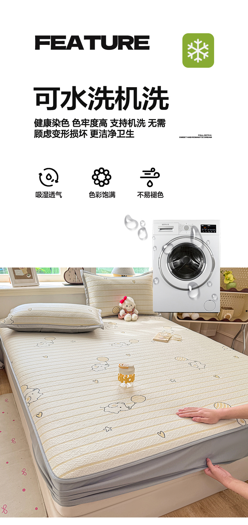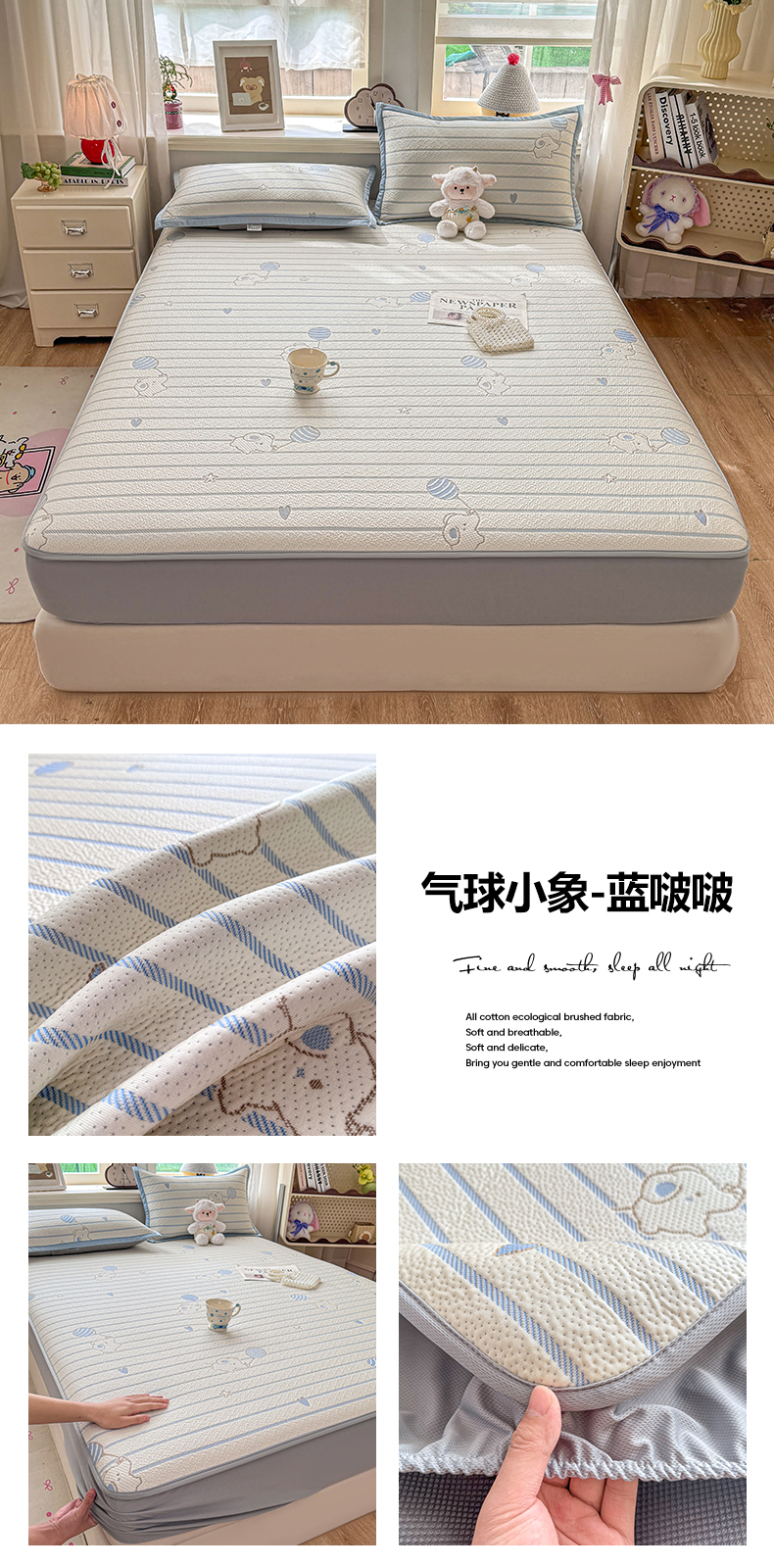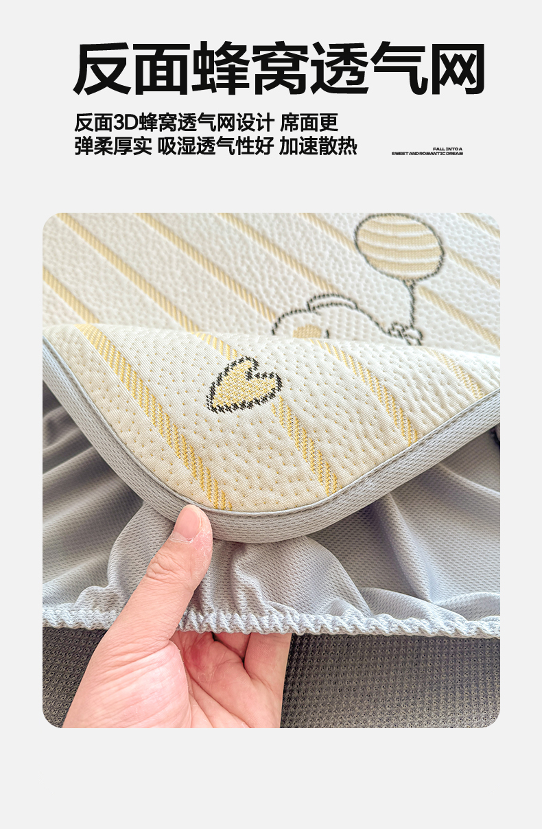 当前位置: 91家纺网 > 商品网购 > 床上用品 > 凉席 > 其他凉席 > 源舍家纺 2026新款A类PE卡通凉席三件套小红书爆款可水洗空调软席凉感值超0.25-床席 气球小象-黄啵啵床笠款