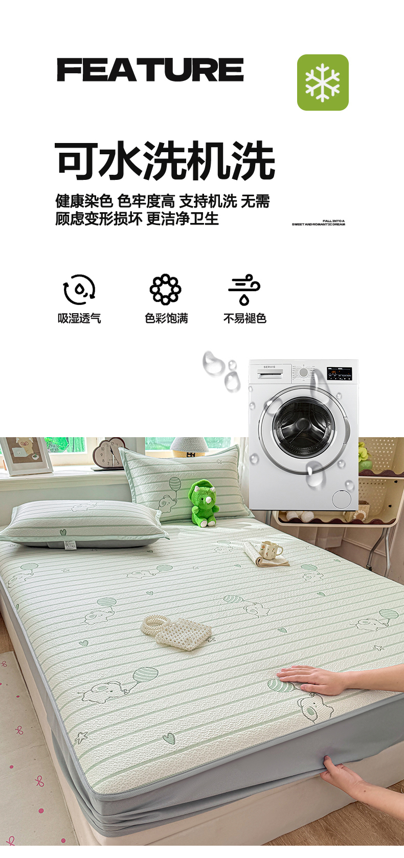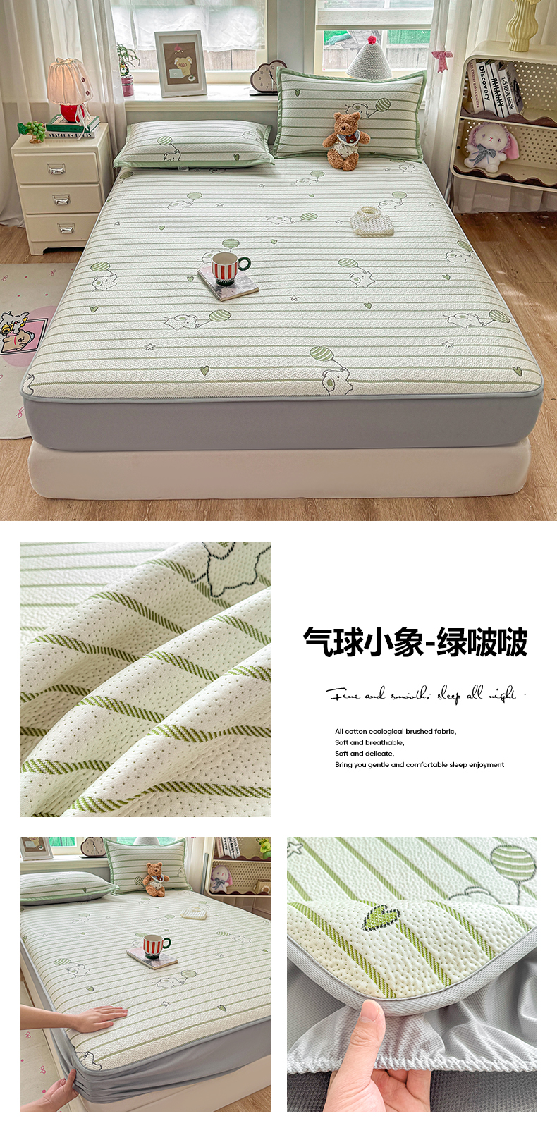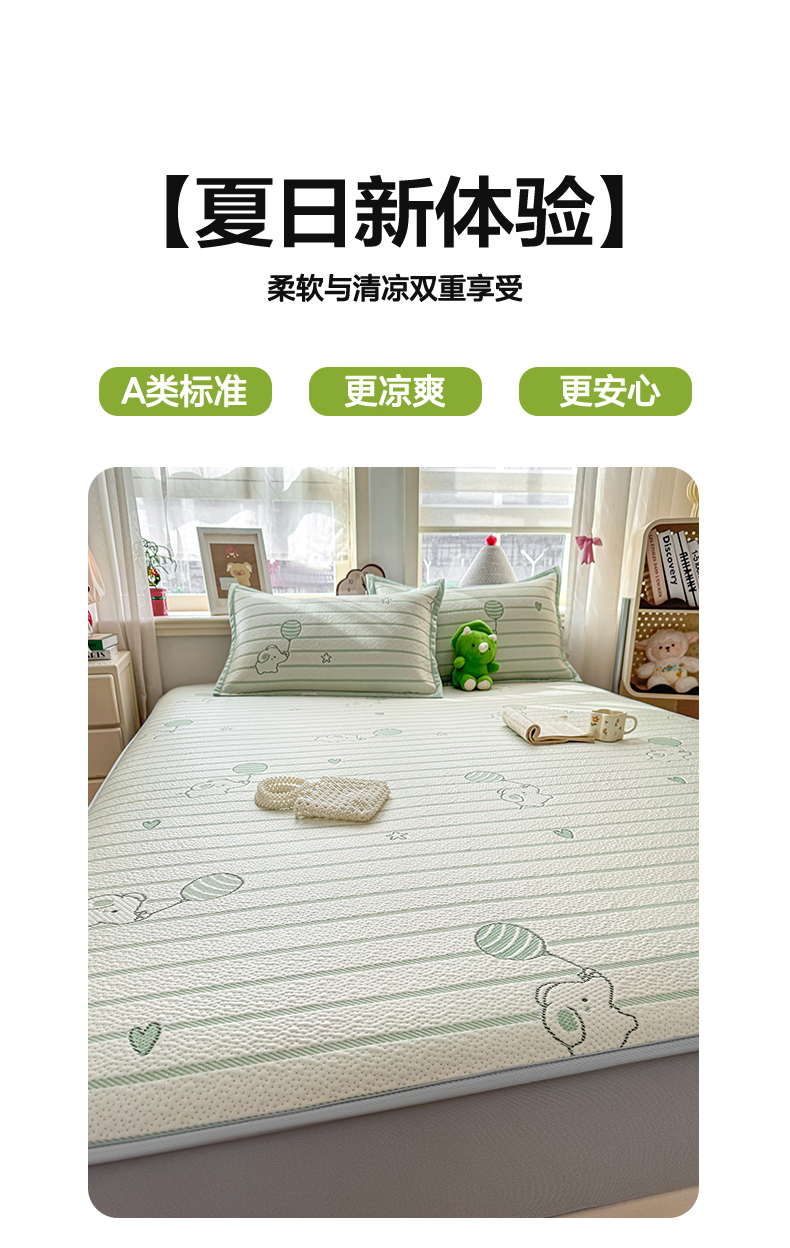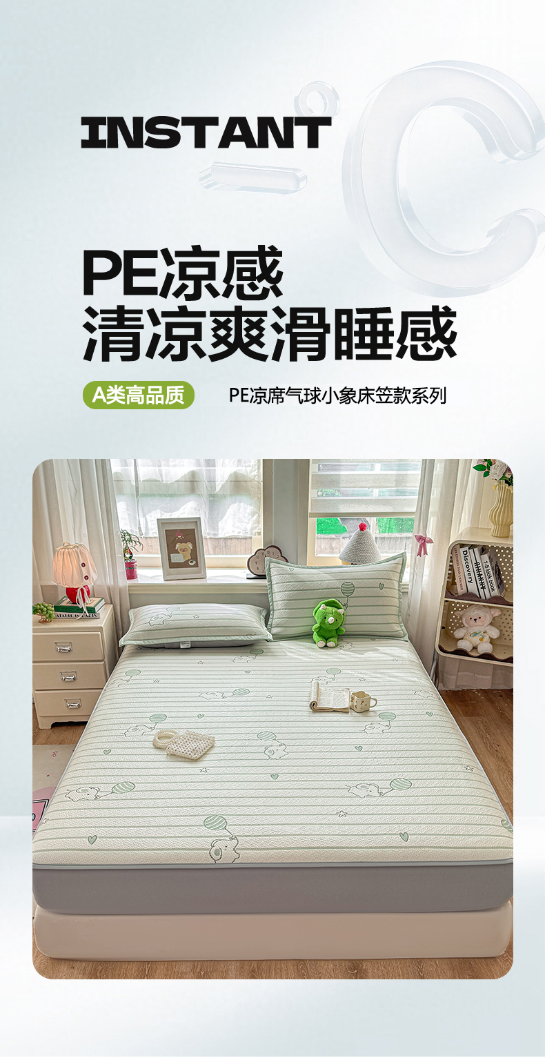 当前位置: 91家纺网 > 商品网购 > 床上用品 > 凉席 > 其他凉席 > 源舍家纺 2026新款A类PE卡通凉席三件套小红书爆款可水洗空调软席凉感值超0.25-床笠 气球小象-青啵啵床笠款