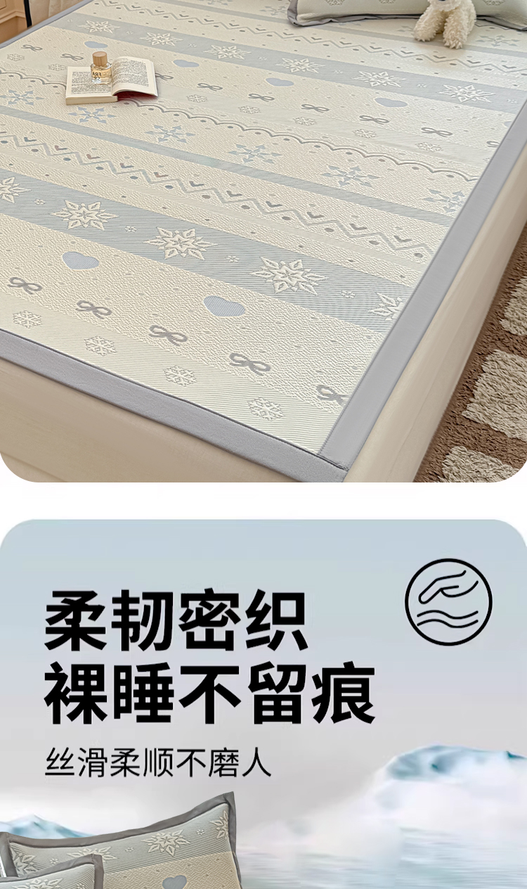 川悦生活 2026新款凉感冰丝席小阪凉感冰丝数码印花席学生床 席星星西高地,席星星西高地
