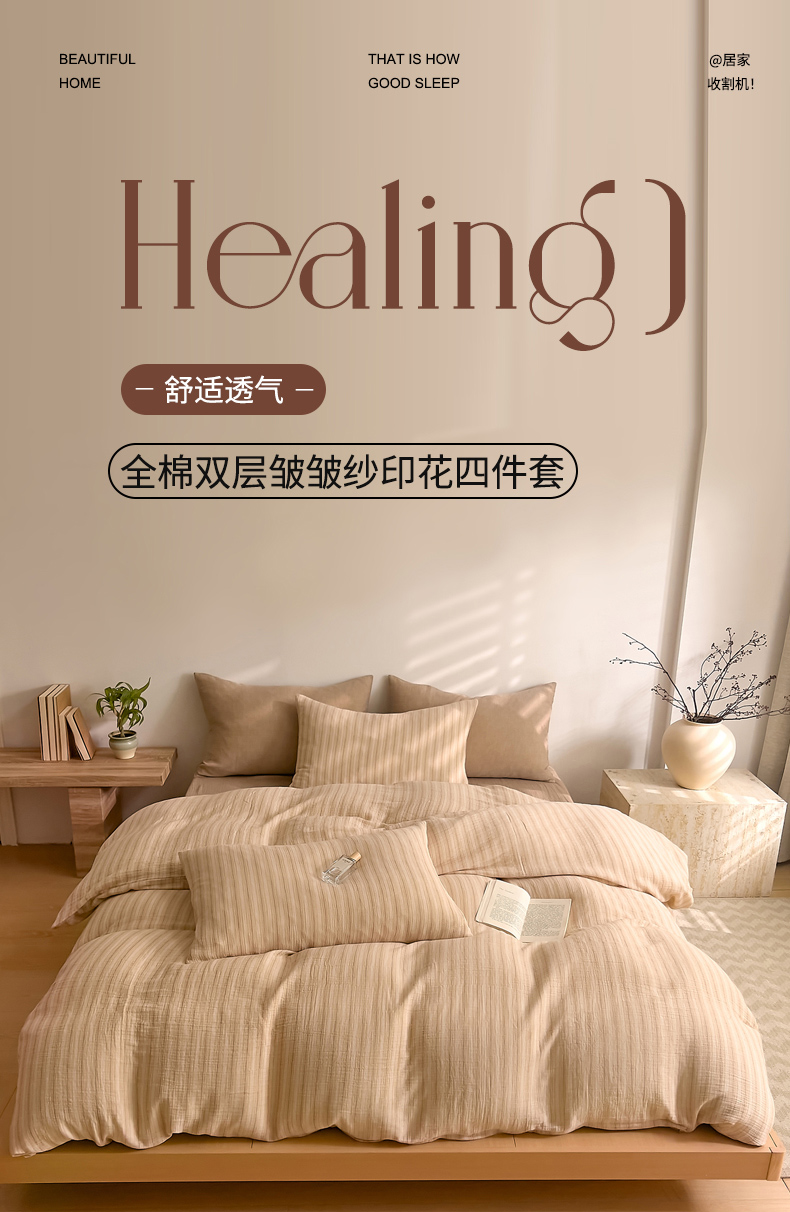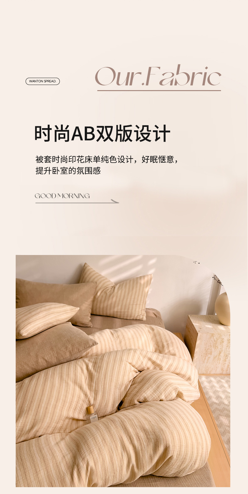 当前位置: 91家纺网 > 商品网购 > 床品套件 > 四件套 > 全棉普通四件套 > DoDo 兜兜 2026新款全棉纯棉A类色织皱皱纱四件套 小半-棕