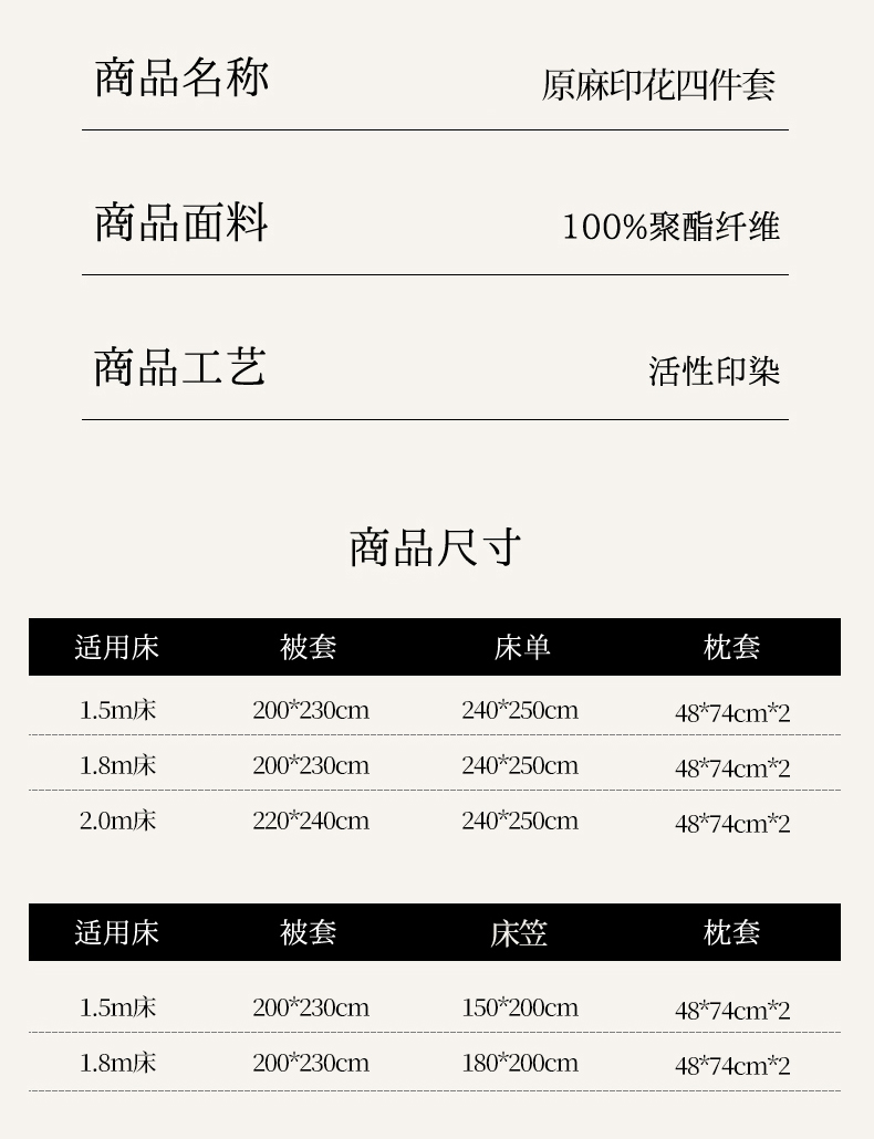 【床笠款】1.8四件套-被套200x230 | ¥65.00 |