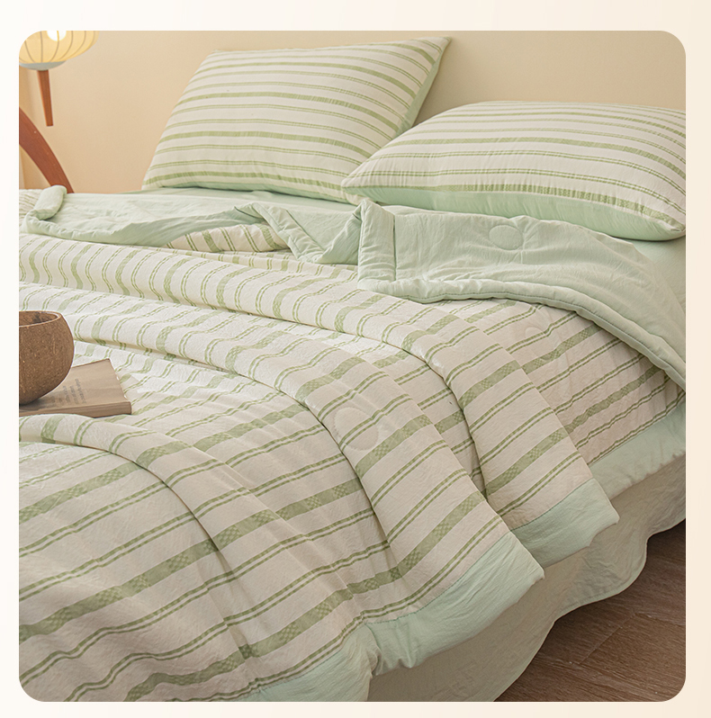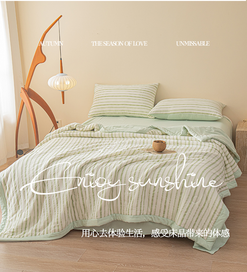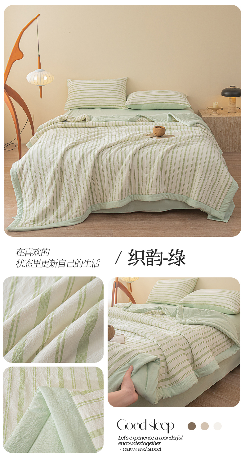 • 91家纺网 家纺一手货源 找家纺 江暮云家纺 2026新款色织提花新疆棉花夏被空调被 织韵-绿