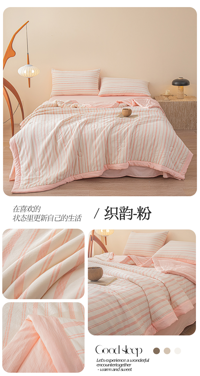 • 91家纺网 家纺一手货源 找家纺 (总)江暮云家纺 2026新款色织提花新疆棉花夏被空调被,织韵-粉,织韵-灰,织韵-咖,织韵-绿