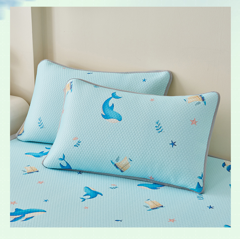 奇丝雅 2026新款夏季A类卡通印花冰豆豆冰丝凉席枕套凉感家用可机洗单人学生宿舍48×74cm一只一对 海洋世界