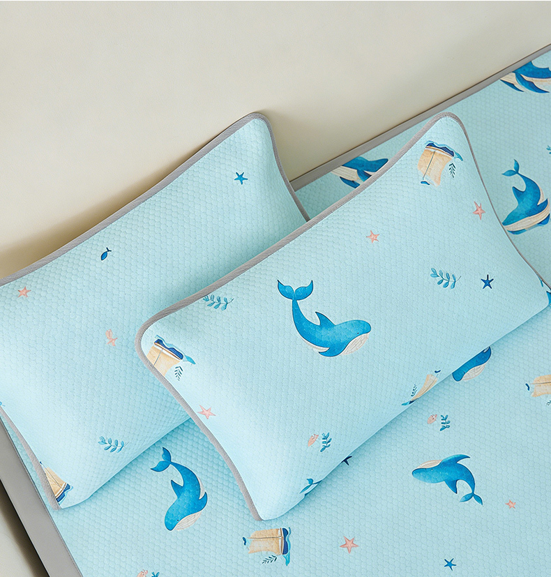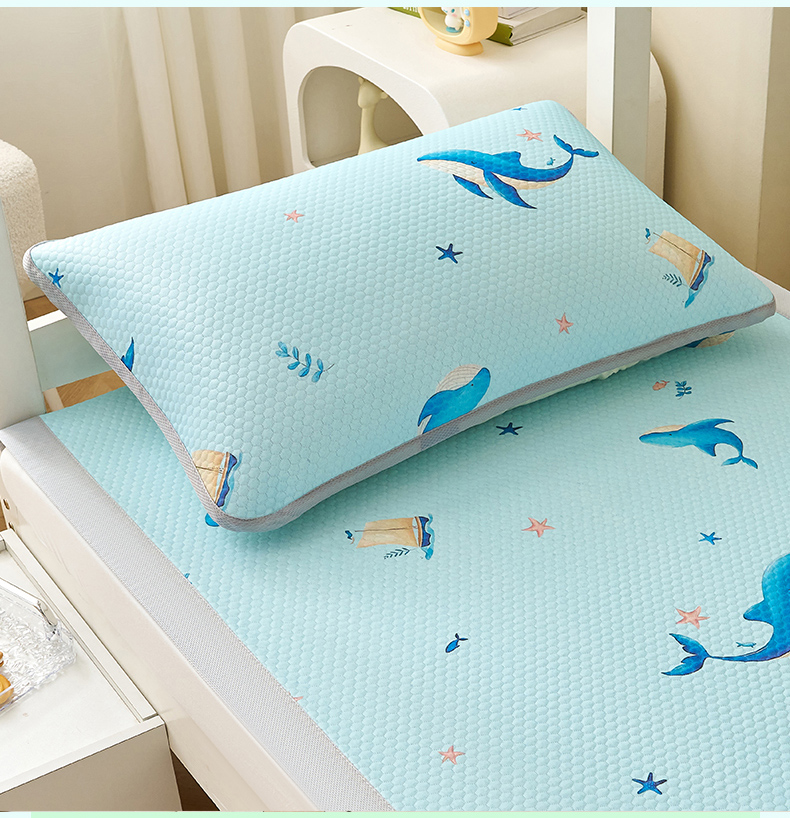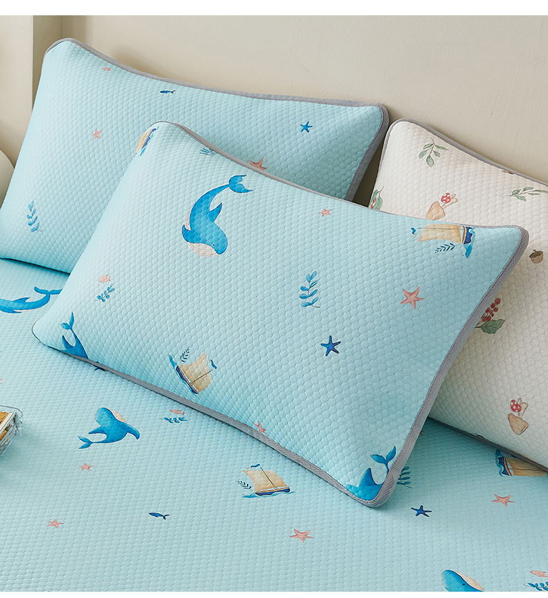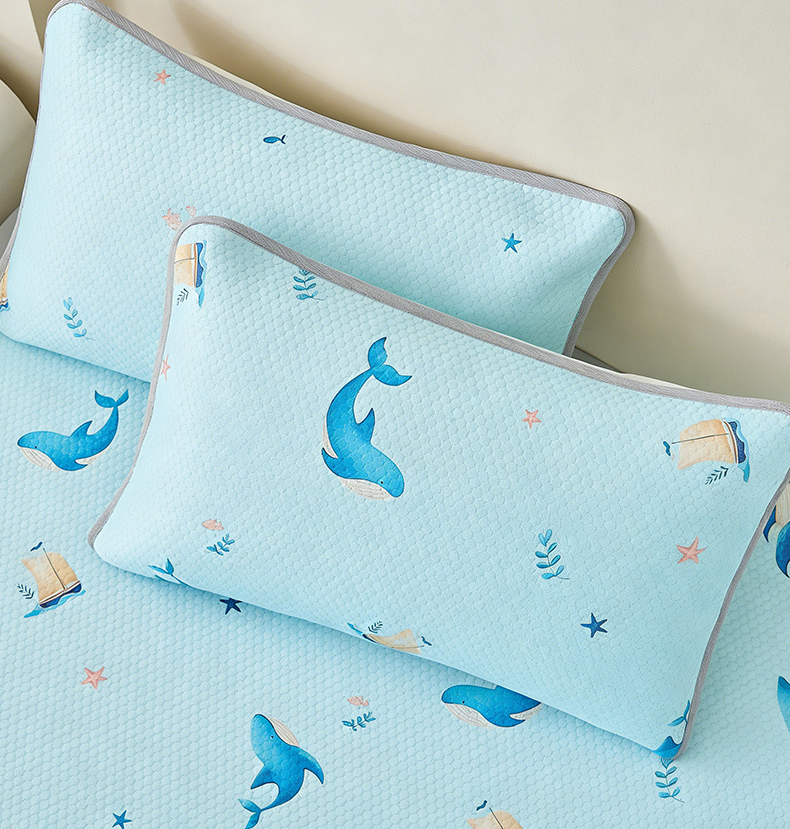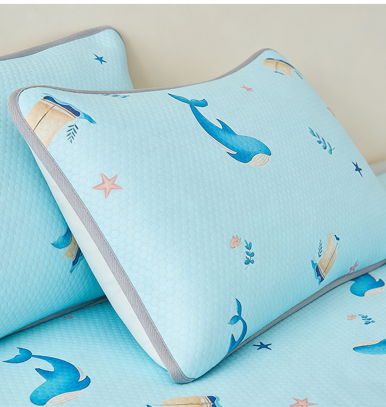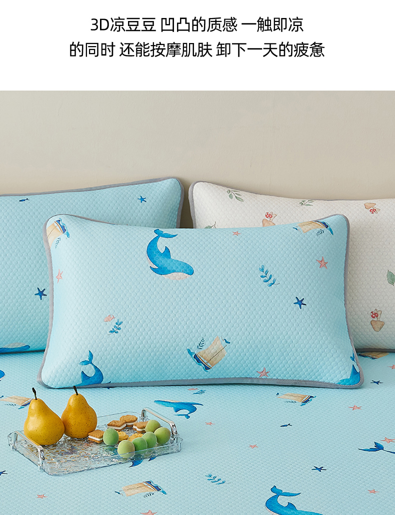 商品名称:奇丝雅 2026新款夏季A类卡通印花冰豆豆冰丝凉席枕套凉感家用可机洗单人学生宿舍48×74cm一只一对 海洋世界
