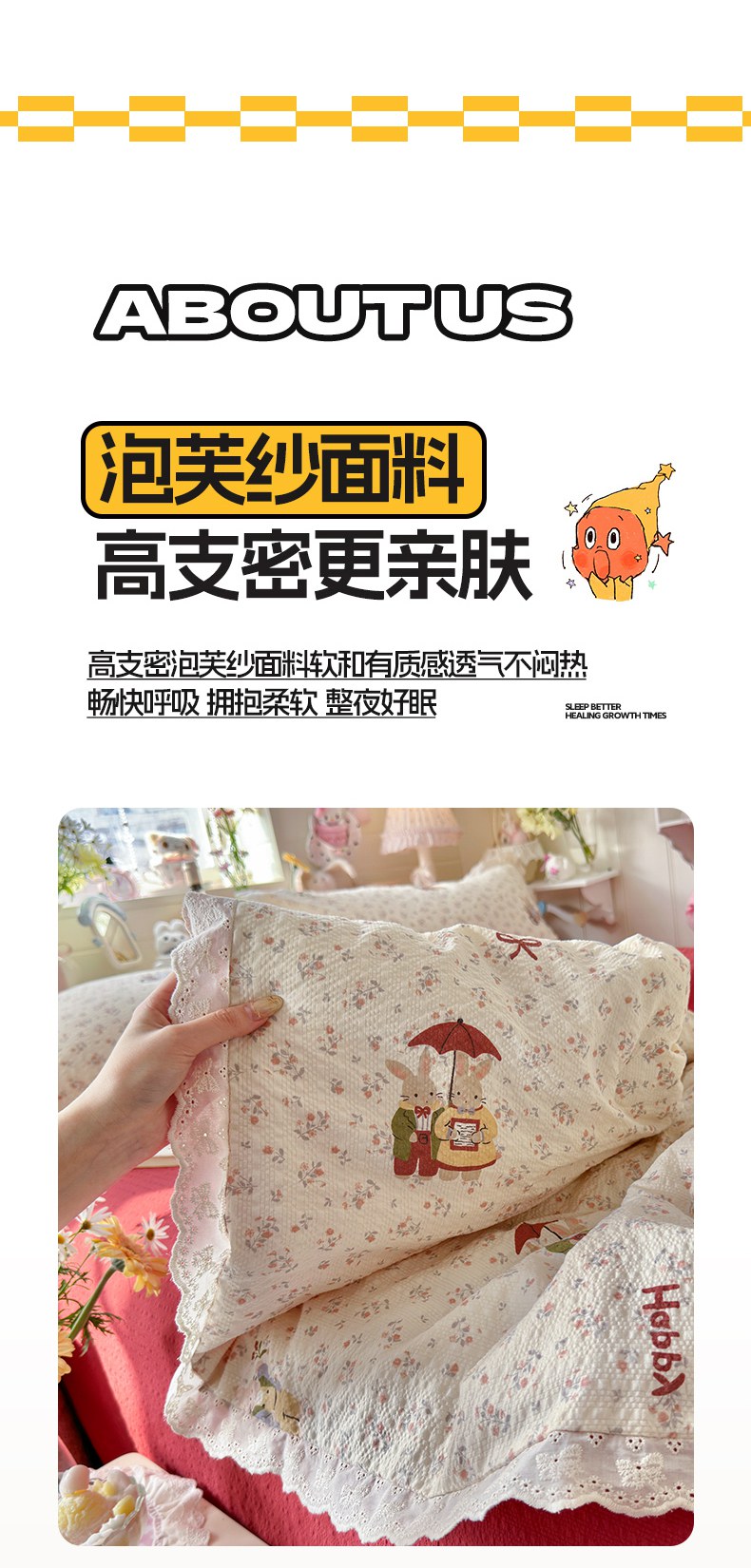 商品名称:贝扬思家纺 2026新款泡芙纱全棉蕾丝花边夏被-花笺系列(甜系花边撞入梦境,软乎乎的质感,治愈所有疲惫) 花笺-躲雨小兔