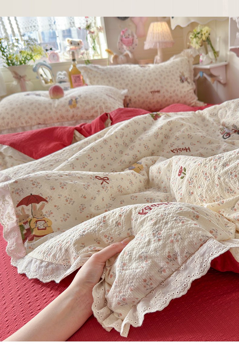 被子 > 夏被 > 贝扬思家纺 2026新款泡芙纱全棉蕾丝花边夏被-花笺系列(甜系花边撞入梦境,软乎乎的质感,治愈所有疲惫) 花笺-躲雨小兔