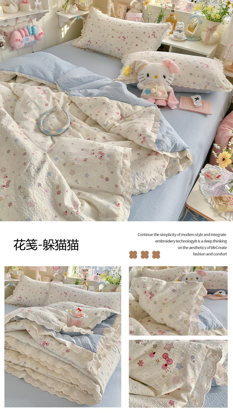 (总)贝扬思家纺 2025新款水洗棉毛巾绣夏被四件套-三丽鸥Star系列,Star-粉星星kt,Star-可爱鬼库洛,Star-蓝星星kt,Star-绿格大眼蛙,Star-马卡龙美乐蒂,Star-贪吃玉桂狗,Star-淘气帕恰狗,Star-甜甜库洛米,Star-樱桃玉桂狗