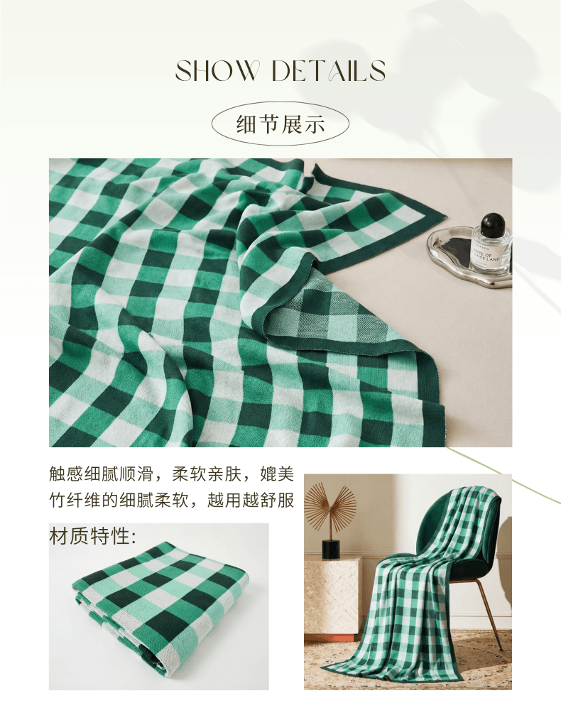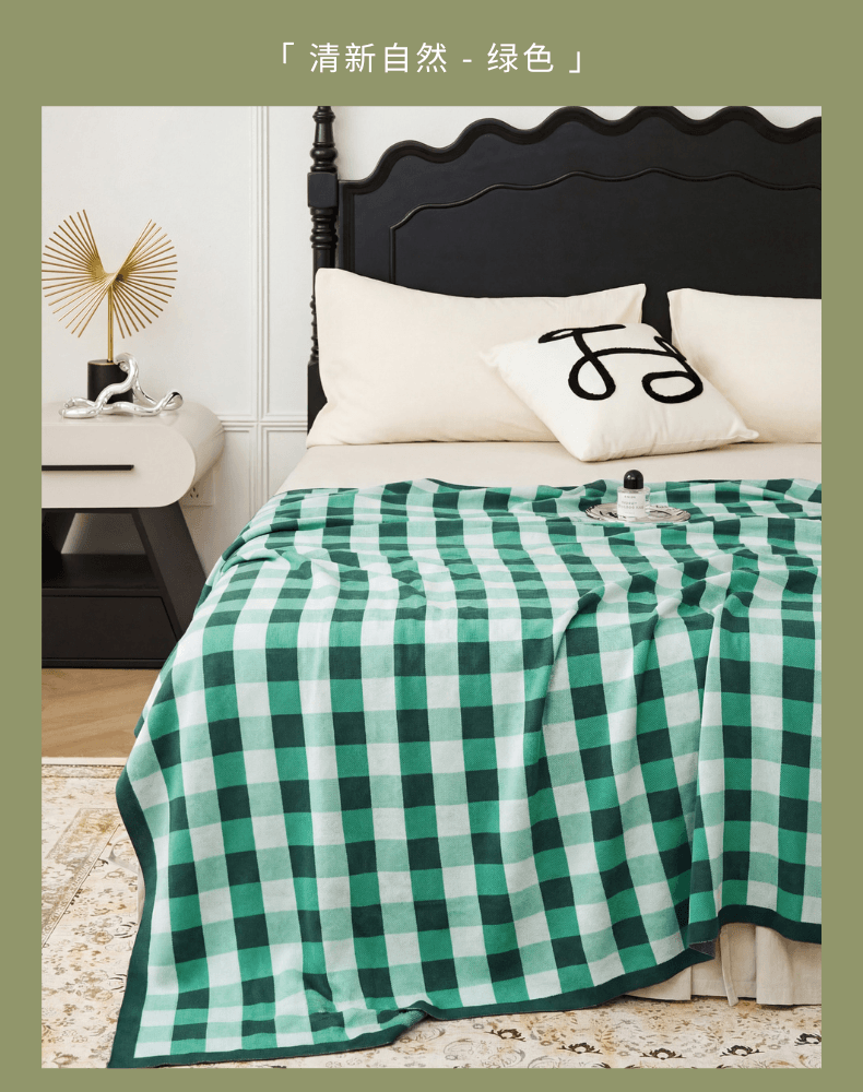 商品名称:暖绵绵家纺 2026新款丝光棉格子盖毯-艾利欧 绿色
