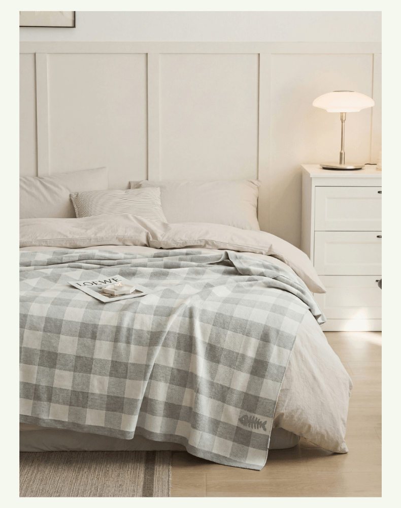 (总)暖绵绵家纺 2026新款丝光棉格子盖毯-艾利欧,咖色,蓝色,绿色,麻灰,组合图