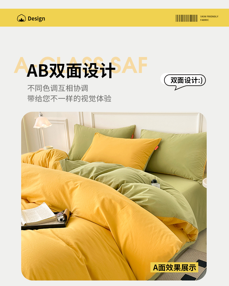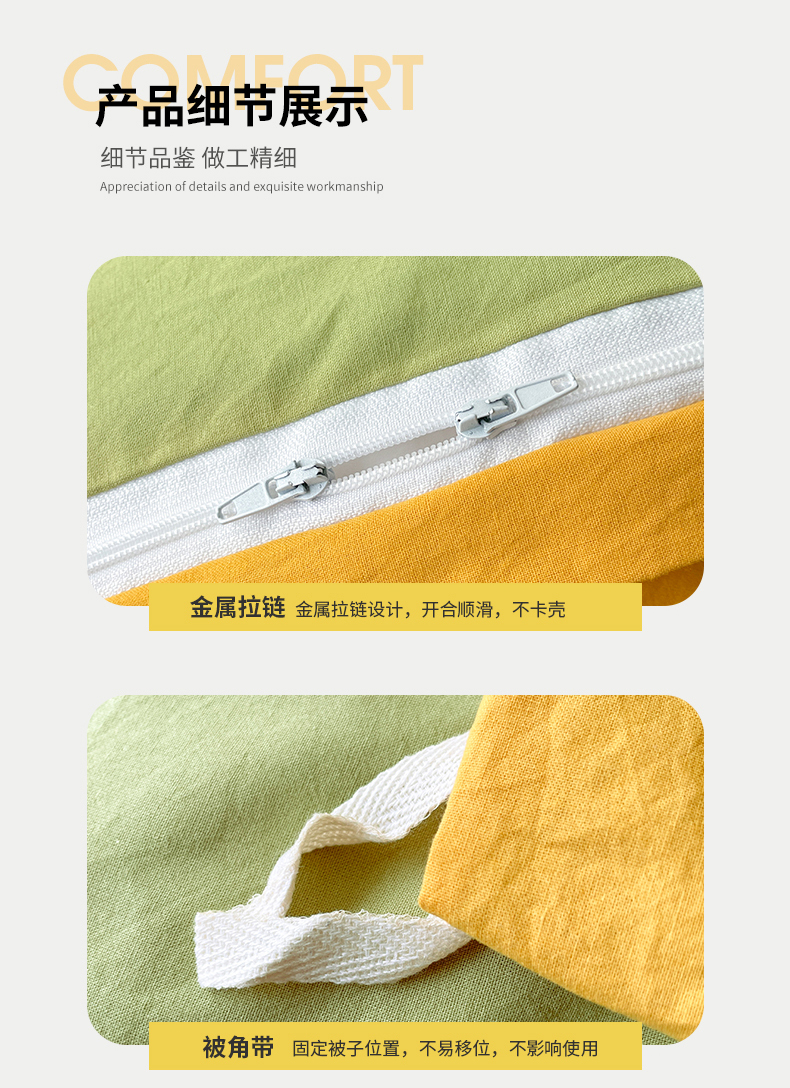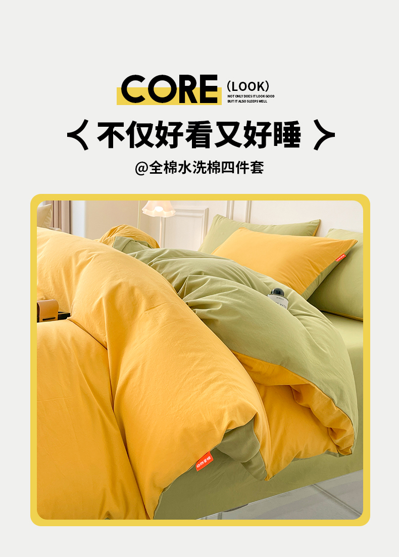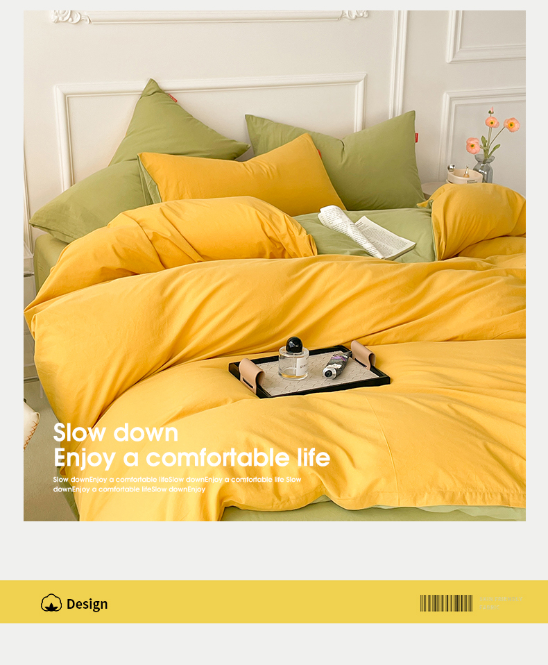 当前位置: 91家纺网 > 商品网购 > 床品套件 > 四件套 > 全棉普通四件套 > 春皖家纺 2026春夏新款双拼全棉纯棉水洗棉四件套 深黄-果绿
