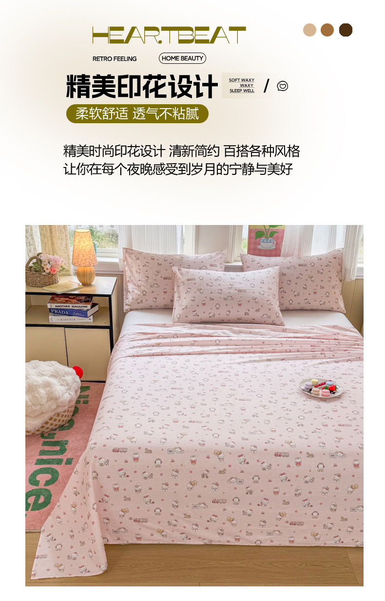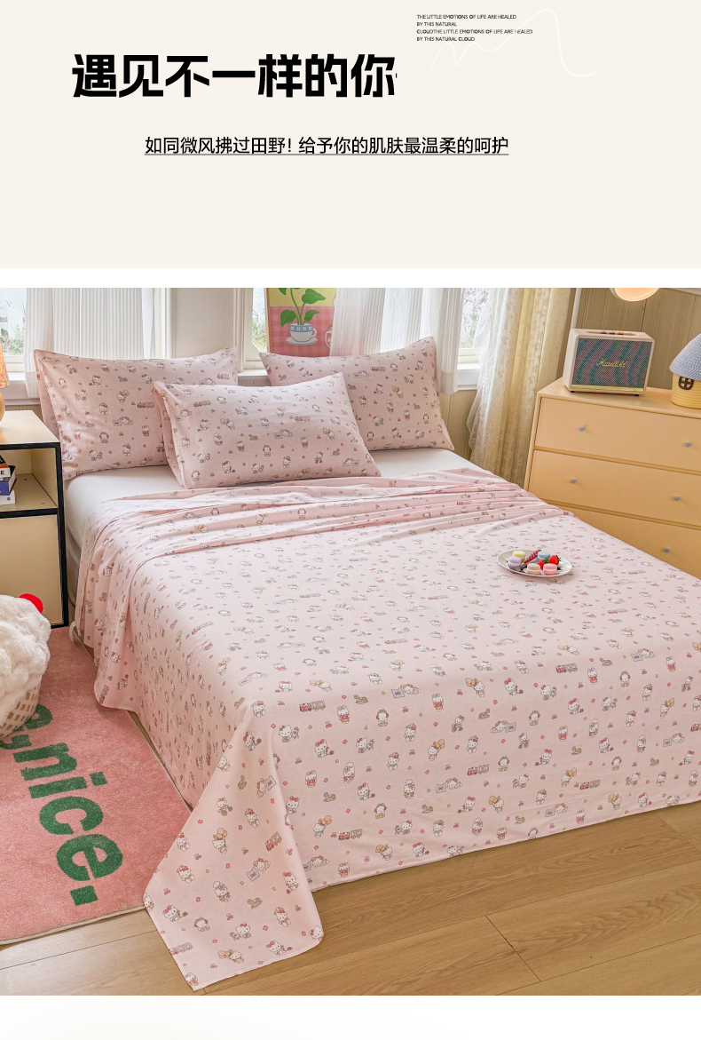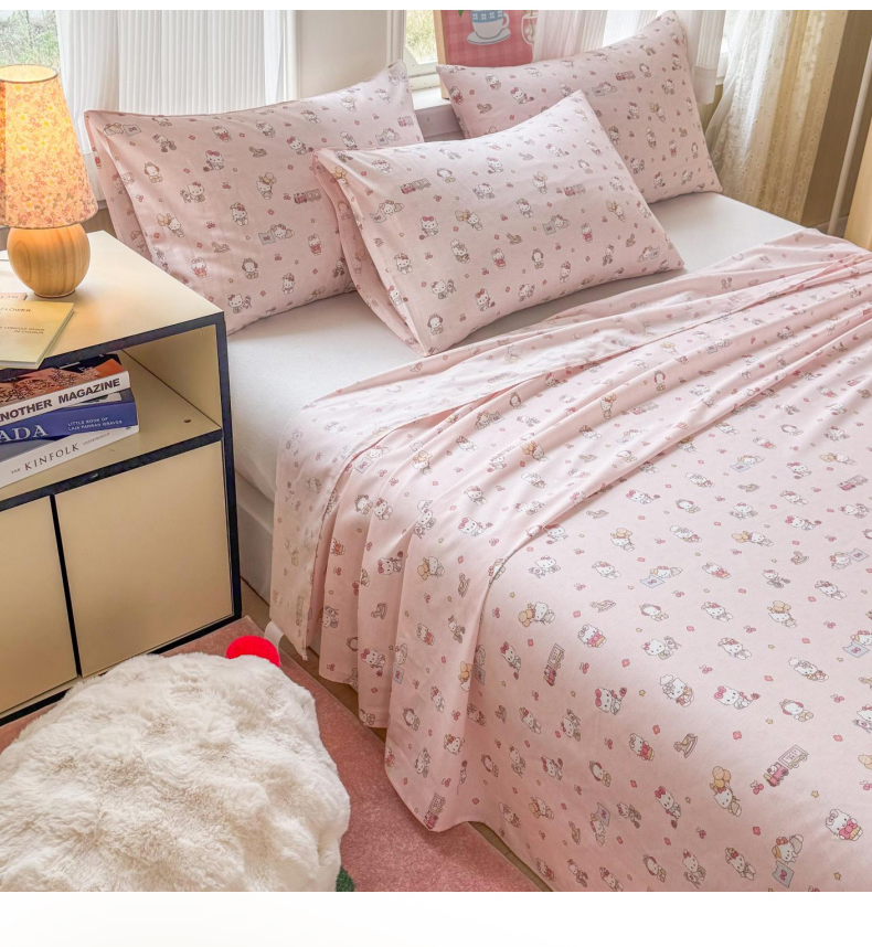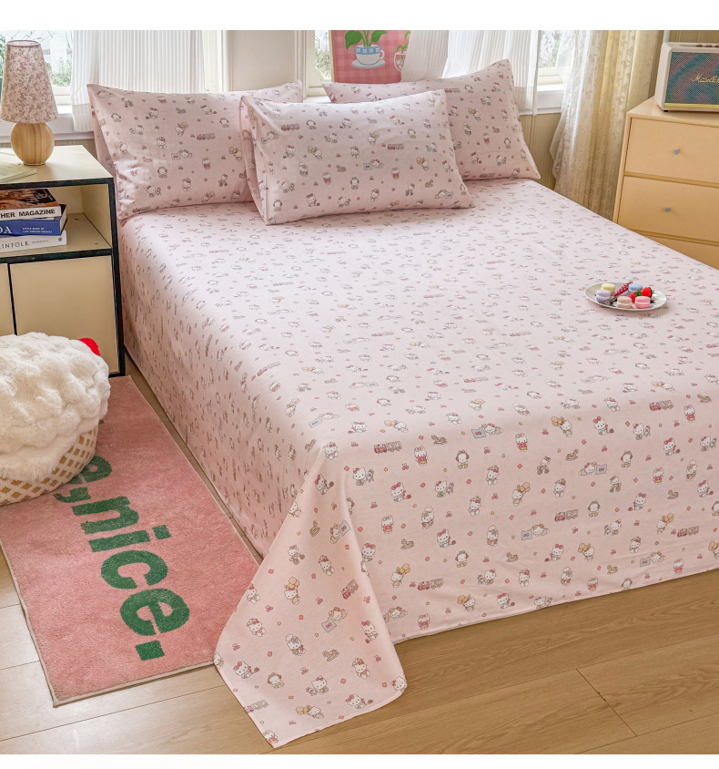 当前位置: 91家纺网 > 商品网购 > 床品套件 > 三件套 > 晨晨家纺 2026春夏新款小清新全棉纯棉印花床单三件套 凯蒂公主