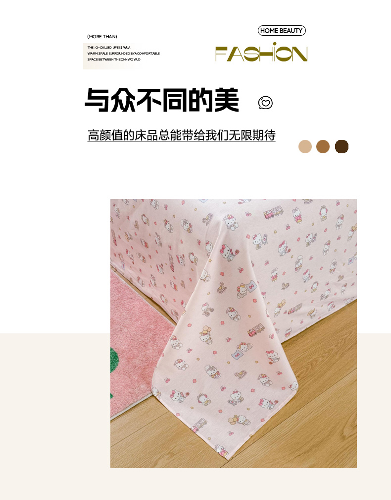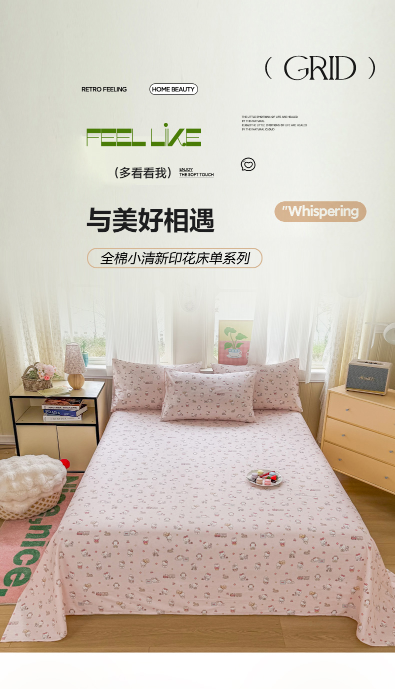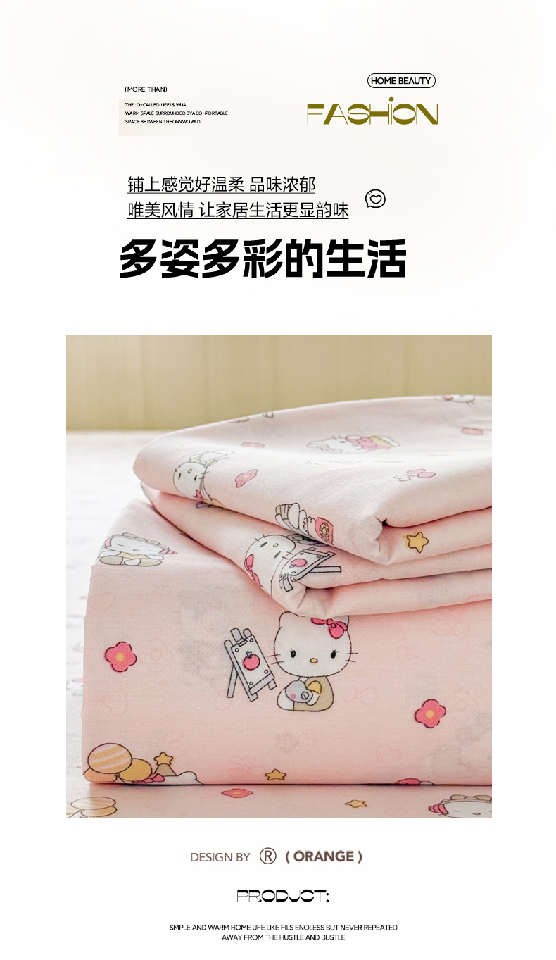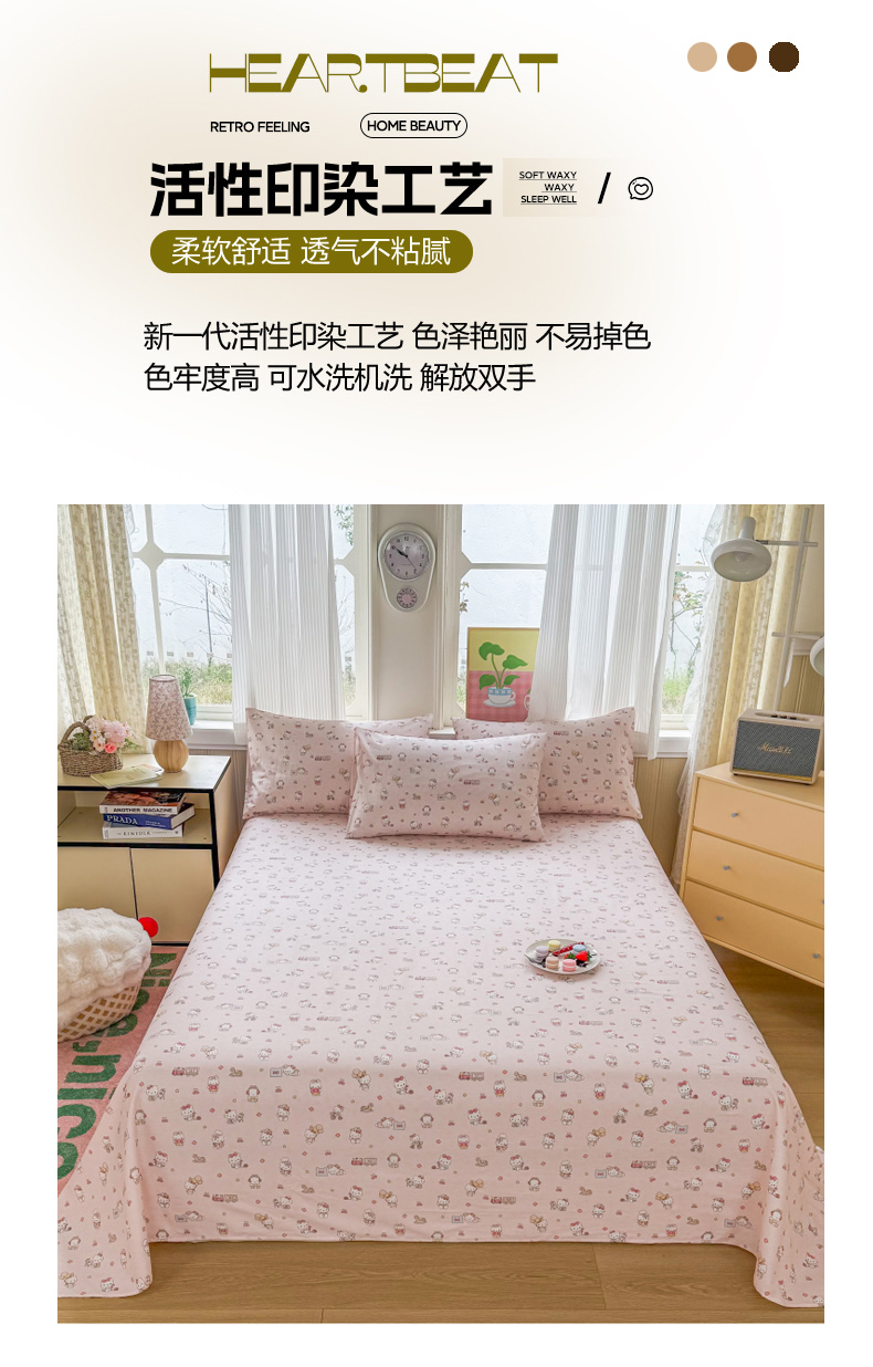 当前位置: 91家纺网 > 商品网购 > 床品套件 > 三件套 > 晨晨家纺 2026春夏新款小清新全棉纯棉印花床单三件套 凯蒂公主