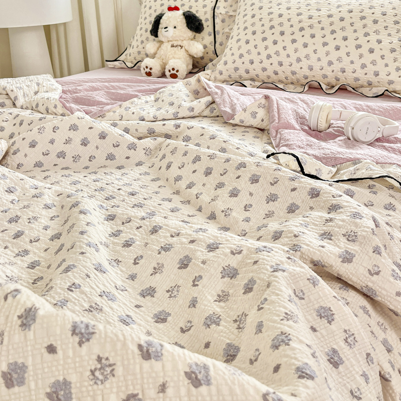 (总)2026春夏新款拼色提花双层纱古法水洗床盖四件套提花云感棉,啵啵熊,春暖花开,春暖花开粉,蝶梦成真,花开富贵,浪漫主义蓝,浪漫主义紫,蘑菇力,南瓜派灰,南瓜派咖,雅韵,雅韵紫