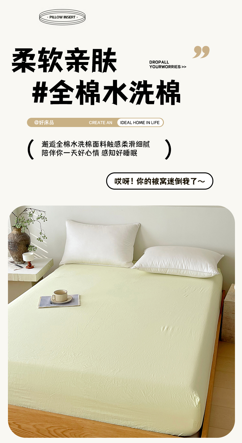 春皖家纺 2026春夏新款双拼全棉纯棉水洗棉单床笠 床笠单件 素雅淡黄