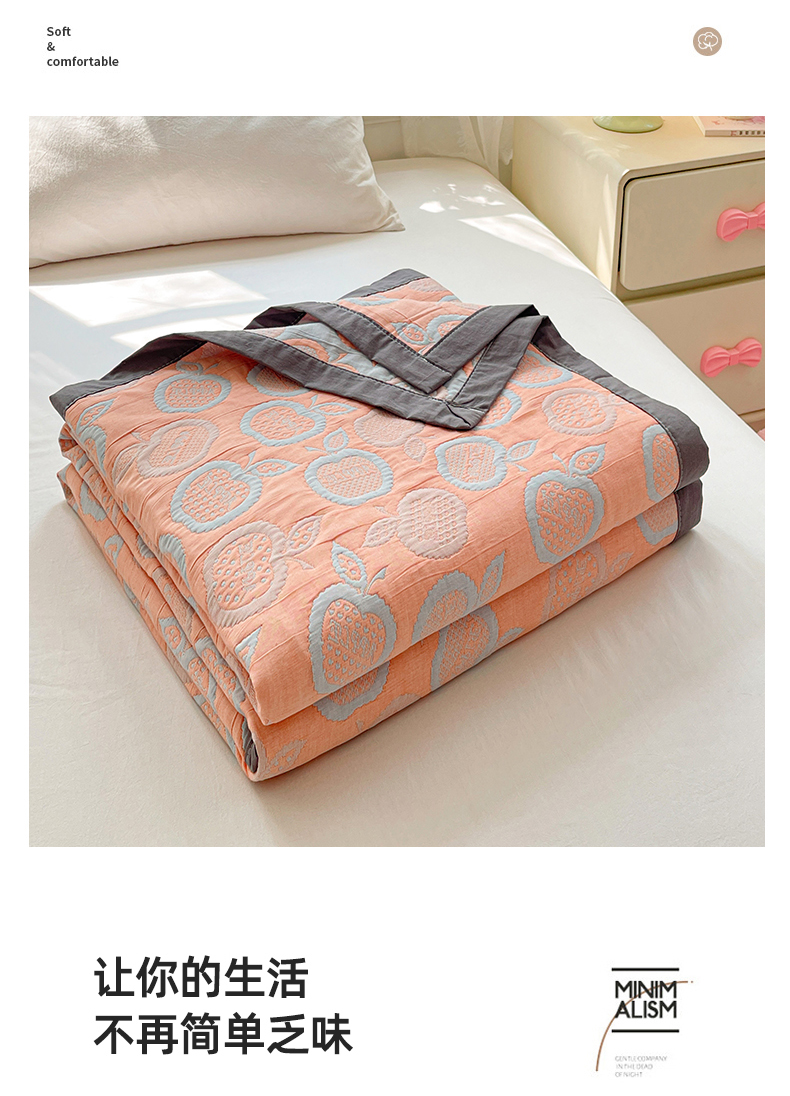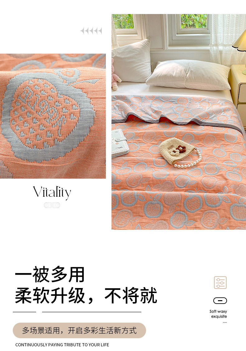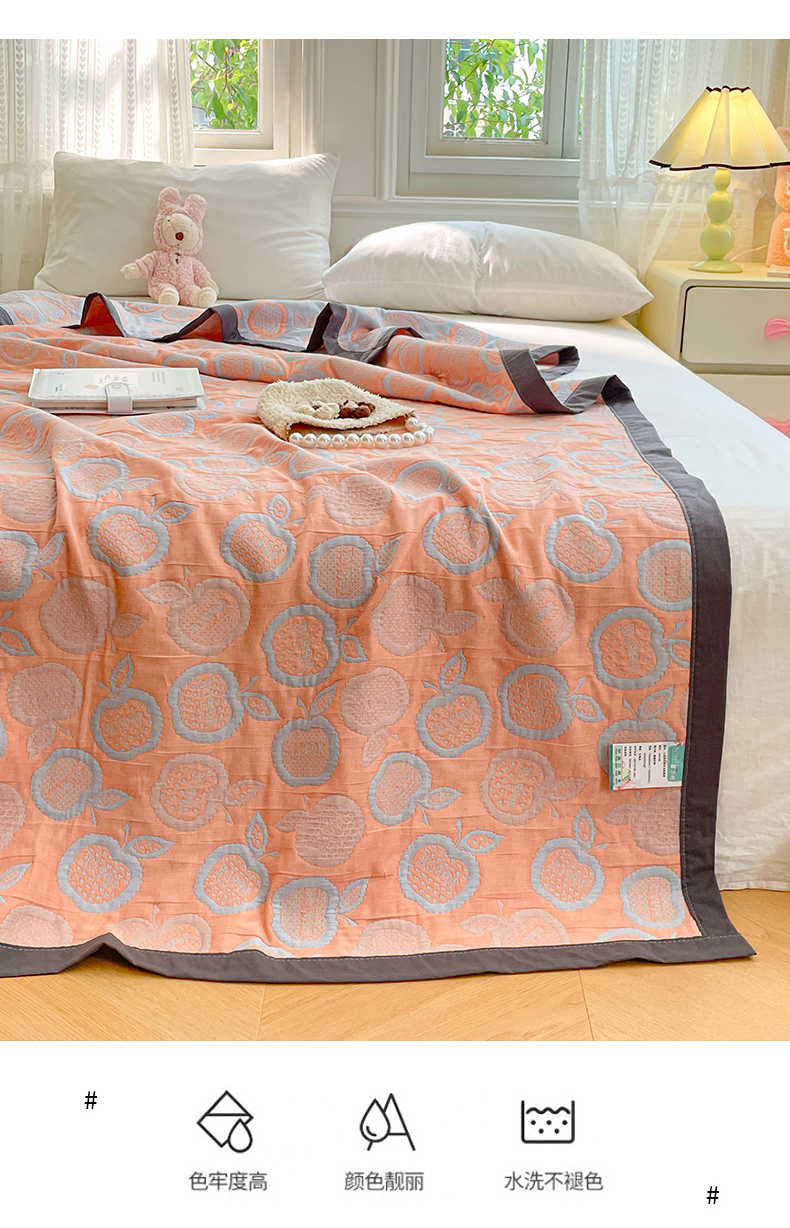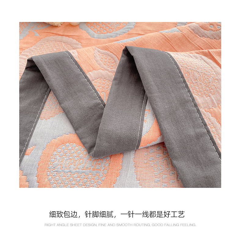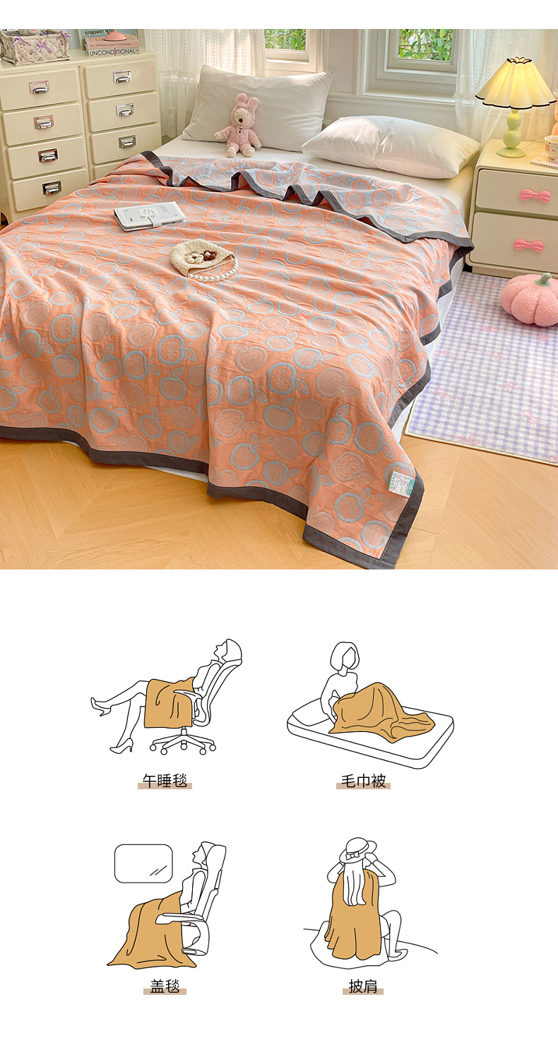 商品名称:云天家纺 2026新款A类全棉三层纱多功能毛巾被(盖毯床单夏被) 幸运苹果-桔