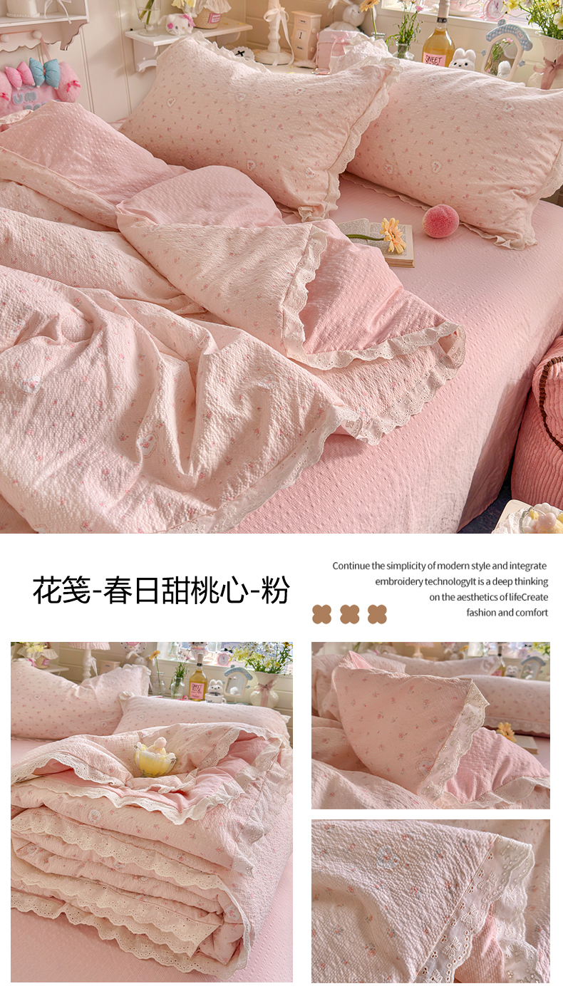 商品名称:几禾 2026新款泡芙纱全棉蕾丝花边夏被-花笺系列(甜系花边撞入梦境,软乎乎的质感,治愈所有疲惫) 花笺-格格心